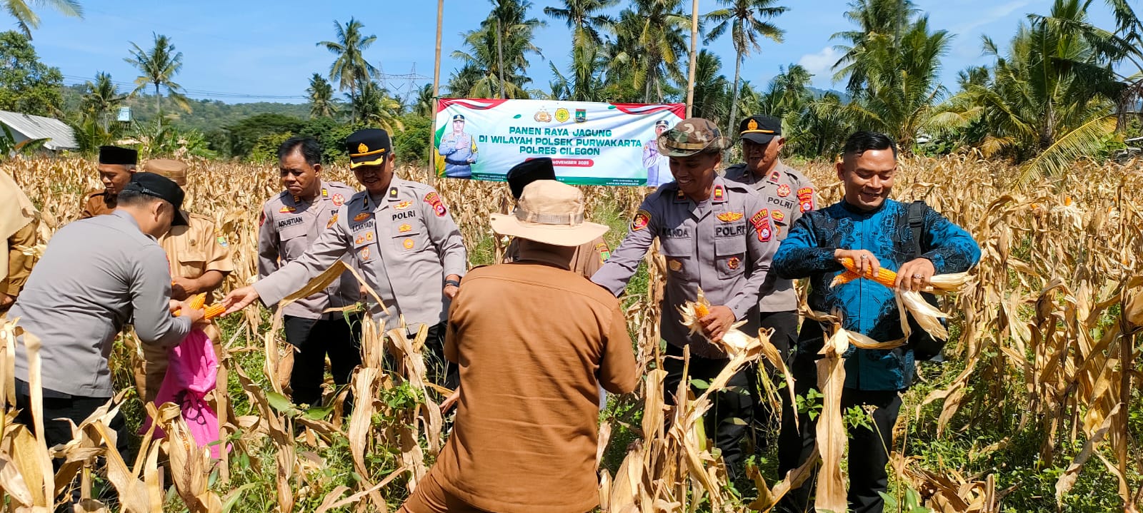 Polsek Purwakarta Kota Cilegon melaksanakan kegiatan panen jagung hibrida secara bersama-sama dengan unsur Forkopincam Purwakarta guna mendukung program ketahanan pangan di wilayahnya