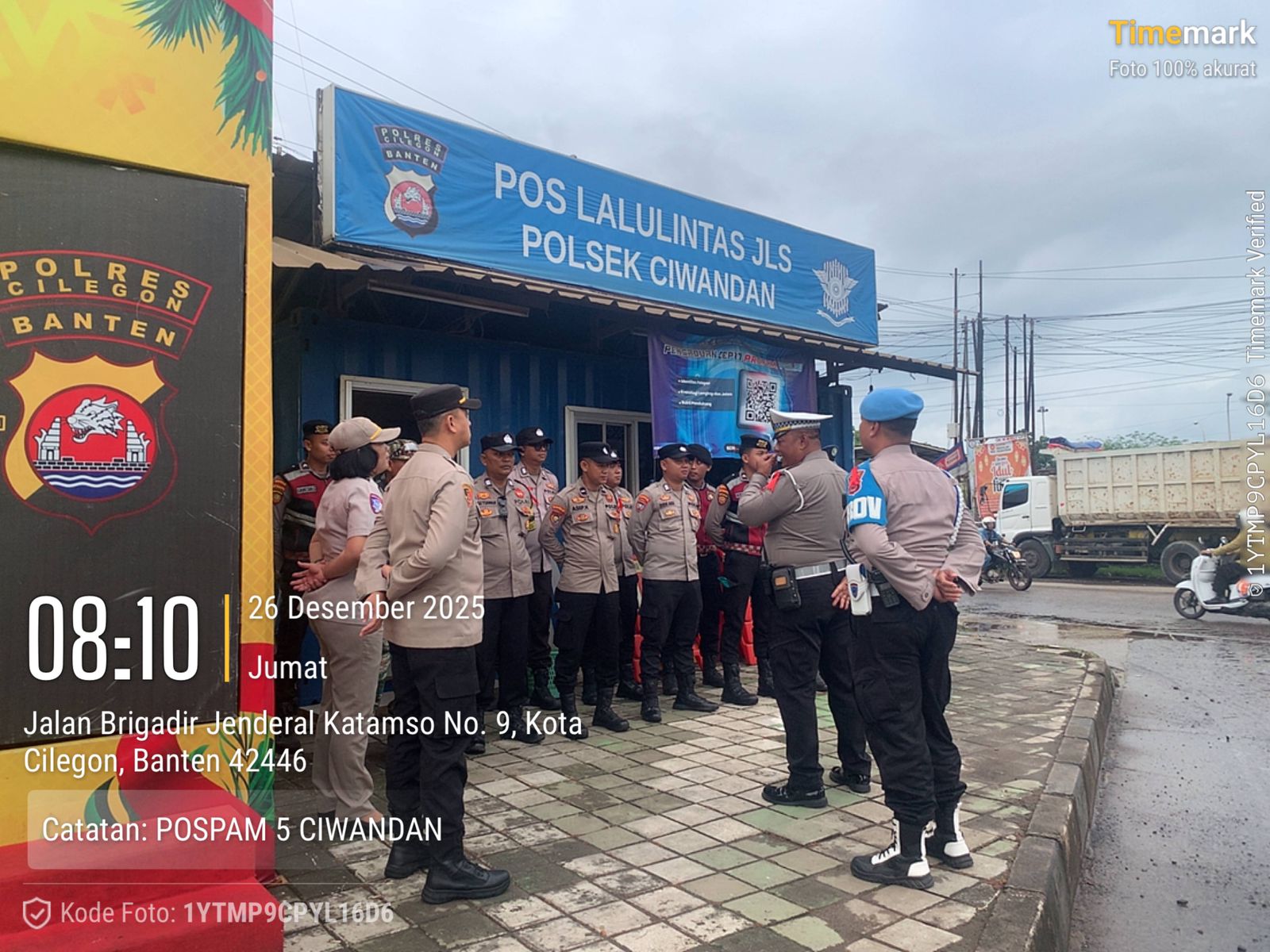 Cilegon - Personil Pospam 5 Ciwandan Polsek Ciwandan Polres Cilegon Polda Banten melaksanakan Apel Kesiapan Pelaksanaan kegiatan pengamanan Arus Lalu-lintas Wisata Dalan Operasi Lilin Maung 2025, Jum'at (26/12/2025).