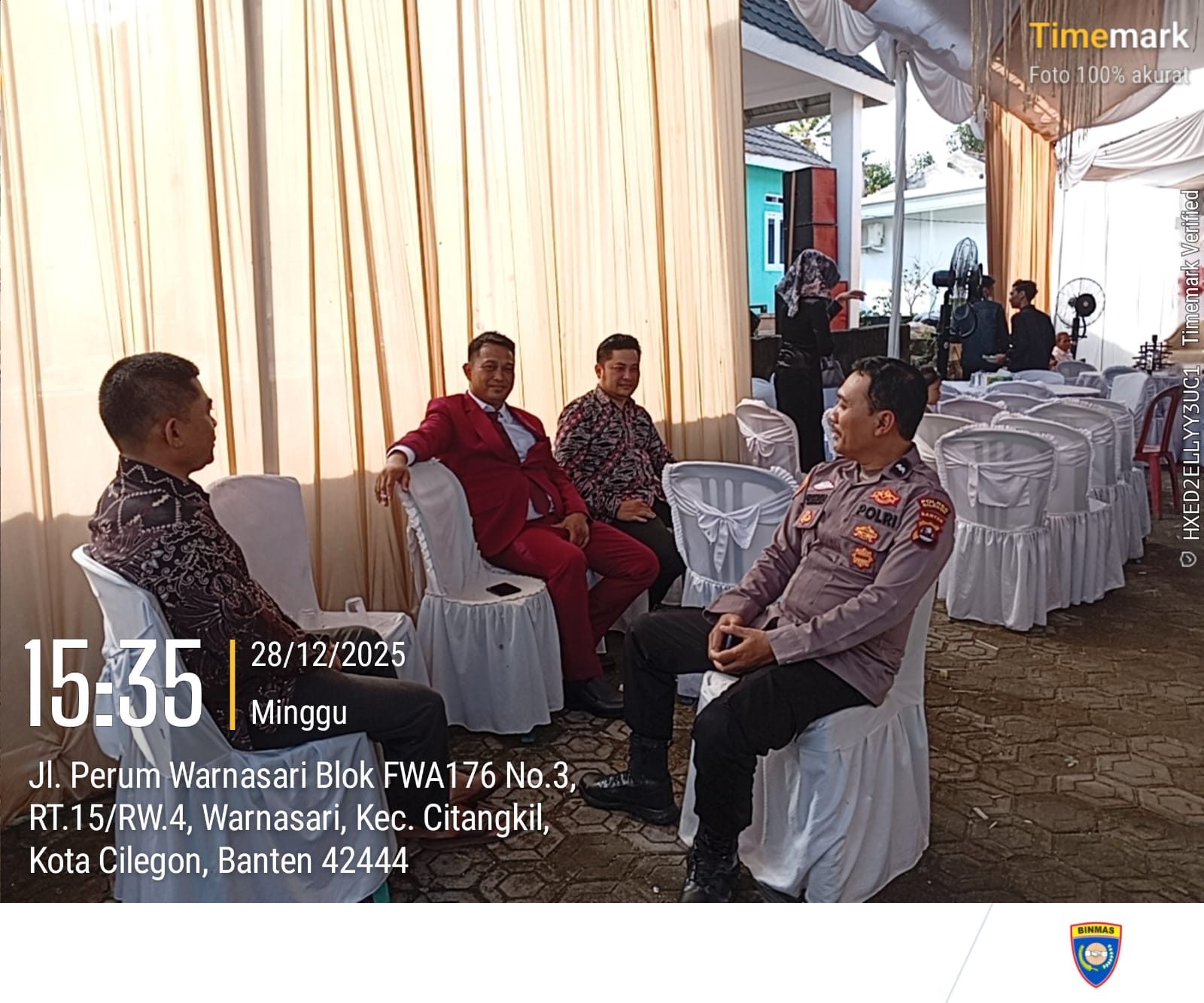 Cilegon - Personil Bhabinkamtibmas Polsek Ciwandan Polres Cilegon Polda Banten Menyampaikan Pesan Kamtibmas dan mengajak masyarakat terus aktif dalam kepedulian terhadap Pemeliharaan keamanan lingkungan di daerah Binaanya, Minggu (28/12/2025).