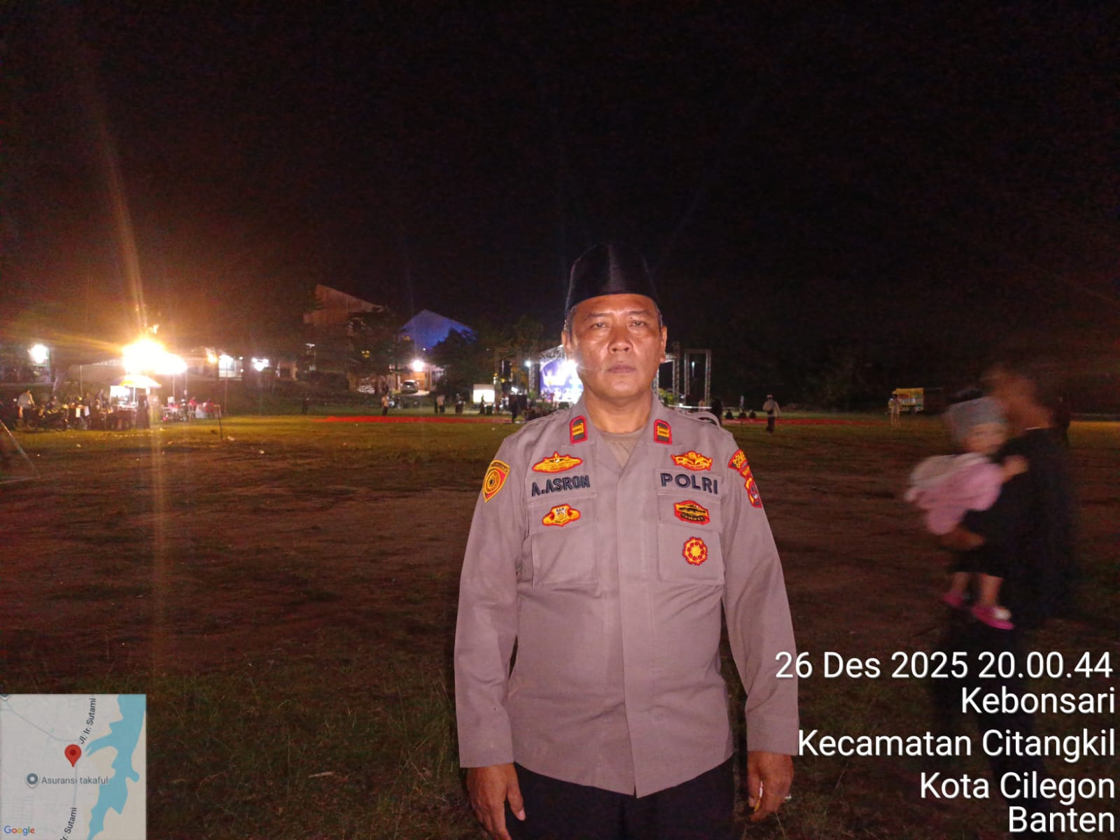 Cilegon - Polres Cilegon melalui Polsek Ciwandan melaksanakan monitoring kegiatan Gema Cilegon Bersholawat dalam rangka Majlis Sholawat El-Musawa ke-3 dan peringatan Isro Mi'raj Nabi Muhammad SAW di Lapangan Tong Alamat, Kebon Sari, Citangkil, Minggu (28/12/2025).