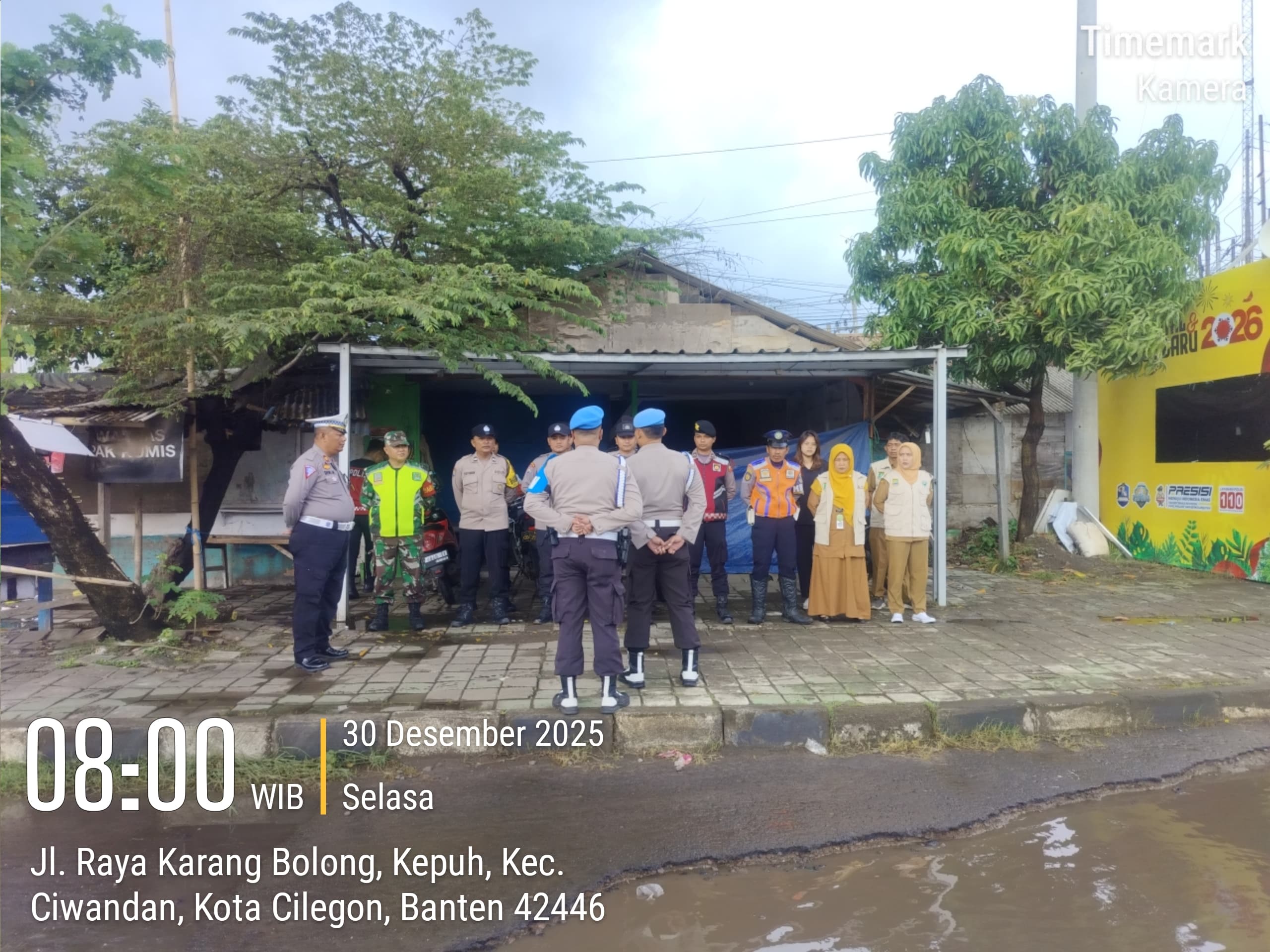 Cilegon - Personil Pospam 5 Ciwandan Polsek Ciwandan Polres Cilegon Polda Banten melaksanakan Apel Kesiapan Pelaksanaan kegiatan pengamanan Arus Lalu-lintas Wisata Dalan Operasi Lilin Maung 2025, Selasa (30/12/2025).