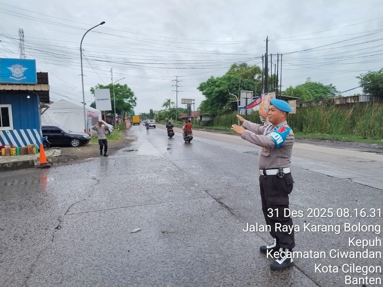 Kapolres Cilegon Polda Banten AKBP Dr. Martua Raja Taripar Laut Silitonga yang di wakili Kapolsek Ciwandan Polres Cilegon Polda Banten Kompol Andi Suherman mengatakan, "Guna terciptanya kelancaran arus Libur Natal Dan tahun Baru 2025-2026, Pospam 5 Ciwandan merekayasa arus lalu lintas yang akan menuju Pelabuhan Pelindo Banten.