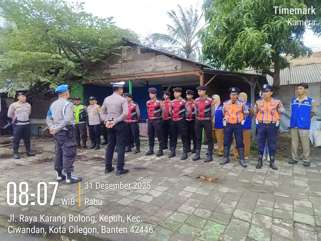 Cilegon - Personil Pospam 5 Ciwandan Polsek Ciwandan Polres Cilegon Polda Banten melaksanakan Apel Kesiapan Pelaksanaan kegiatan pengamanan Arus Lalu-lintas Wisata Dalan Operasi Lilin Maung 2025, Rabu (31/12/2025)