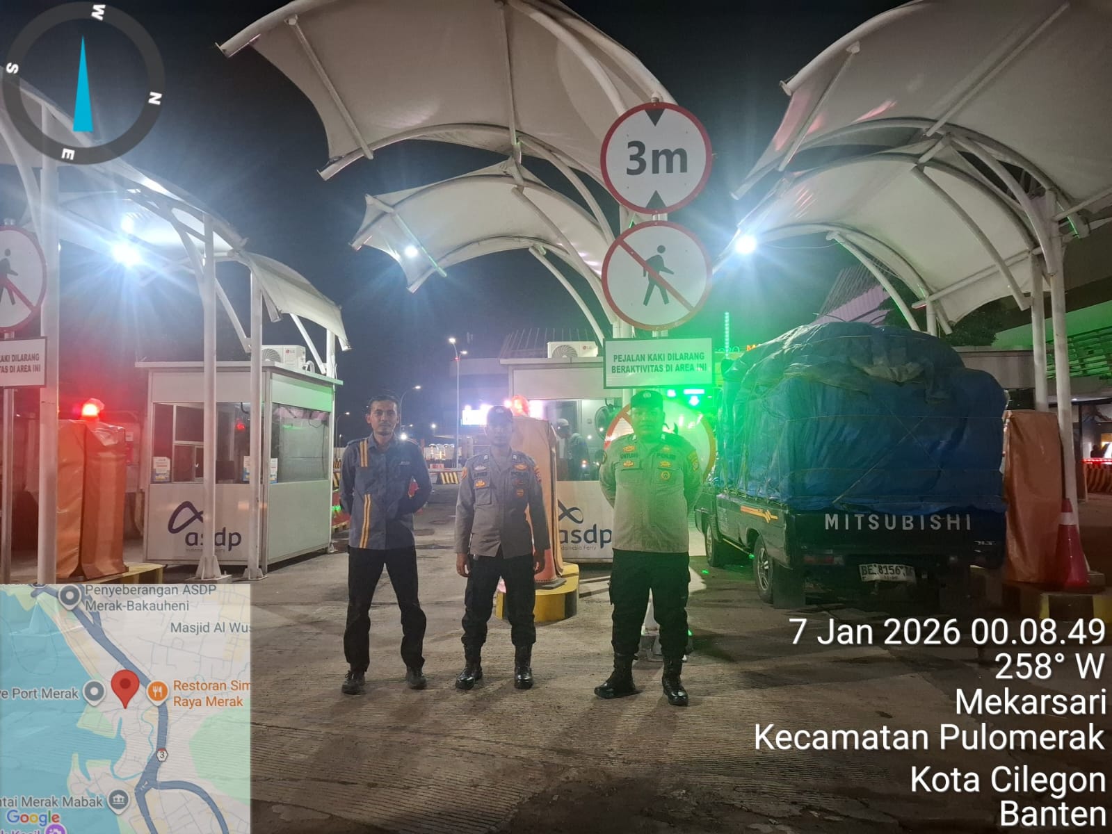 Cilegon - Personil Polsek Kskp Merak Polres Cilegon melaksanakan patroli di kawasan pelabuhan merak memberikan rasa aman dan damai, Rabu (07/01/2026)