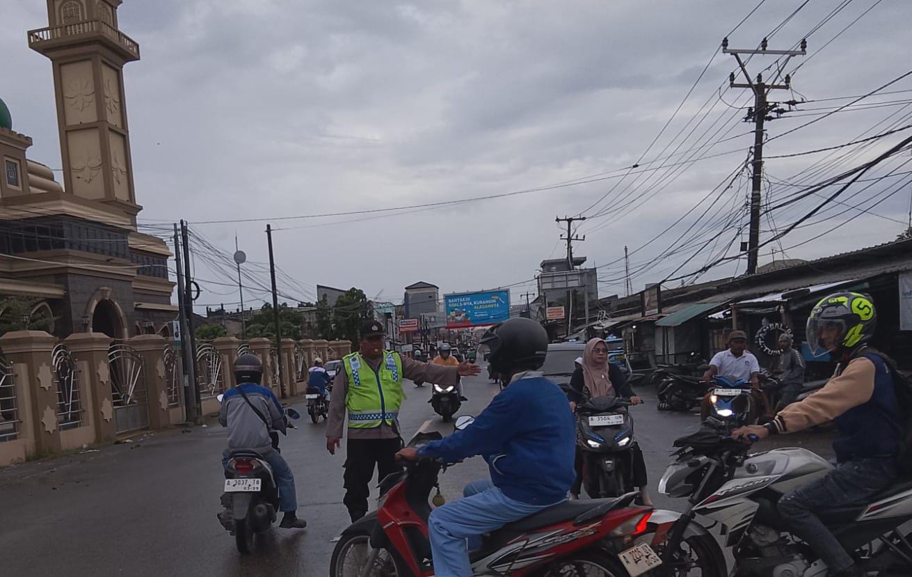 Polsek Anyar Mengurai Kendaraan Dengan Melaksanakan Pengaturan Lalu Lintas