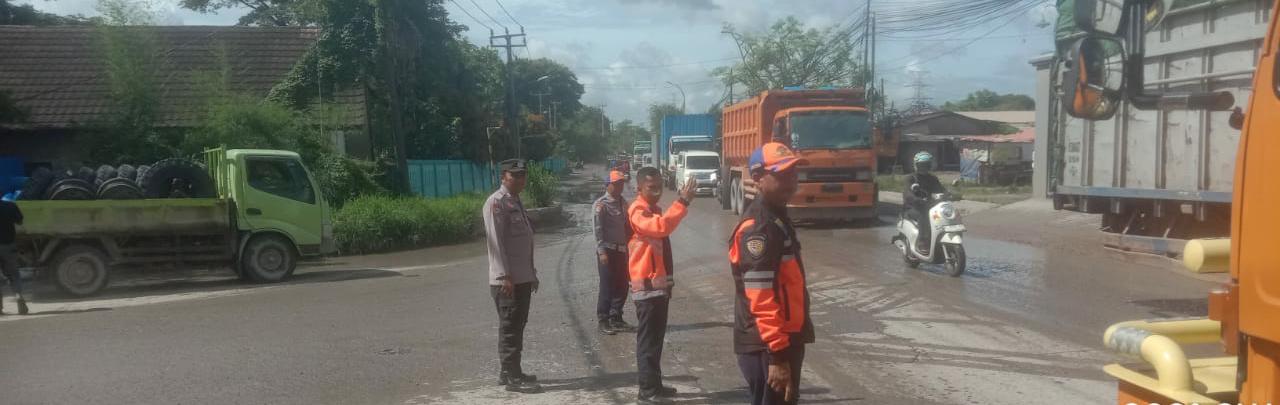 Bripka Leo & Dishub Laksanakan Gatur Lalin Di Jalan Raya PT SMI Bojonegara
