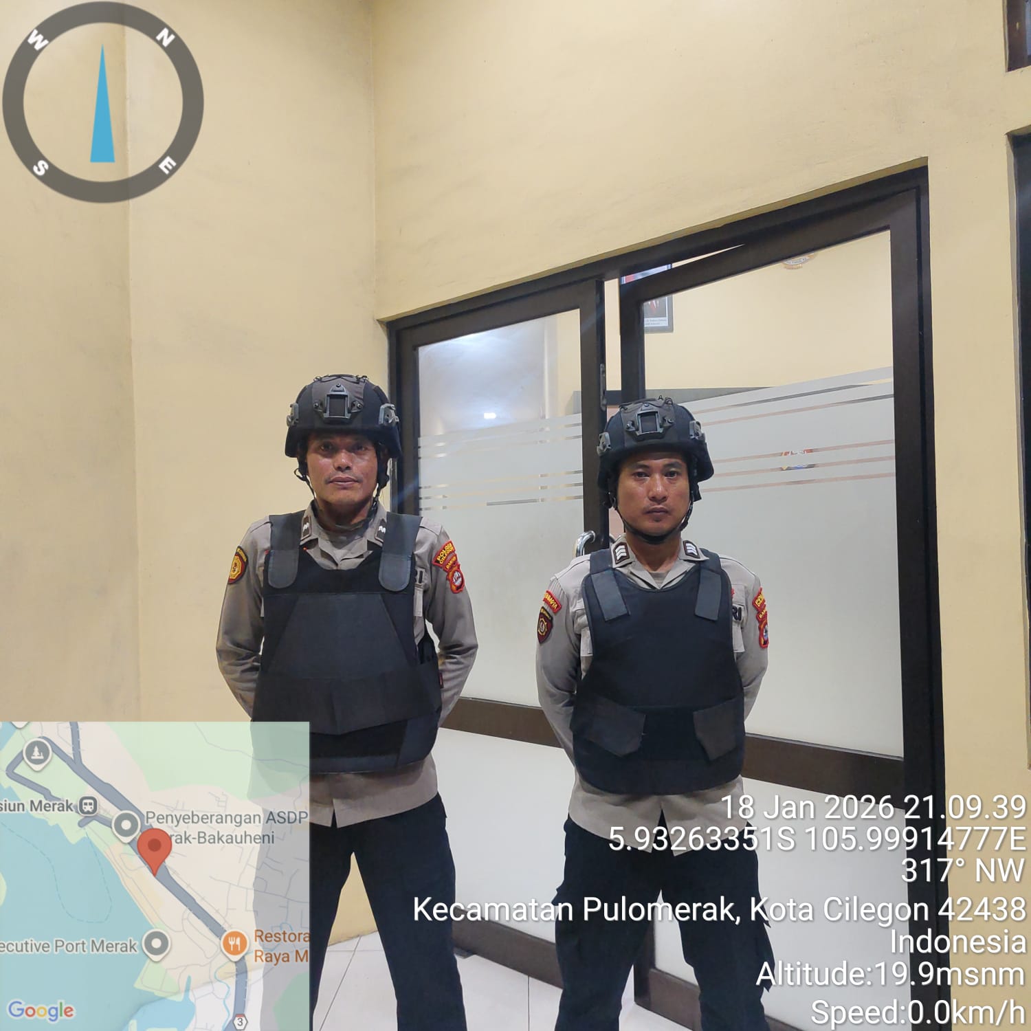 Cilegon - Personel piket jaga Polsek Kskp Merak Polres Cilgon Polda Banten melaksanakan siaga 1 Polsek pelaksanaan Sispam Mako oleh piket siaga dipimpin oleh Kspk Polsek Kskpy Merak Polres Cilegon Polda Banten, Minggu (18/01/2026).