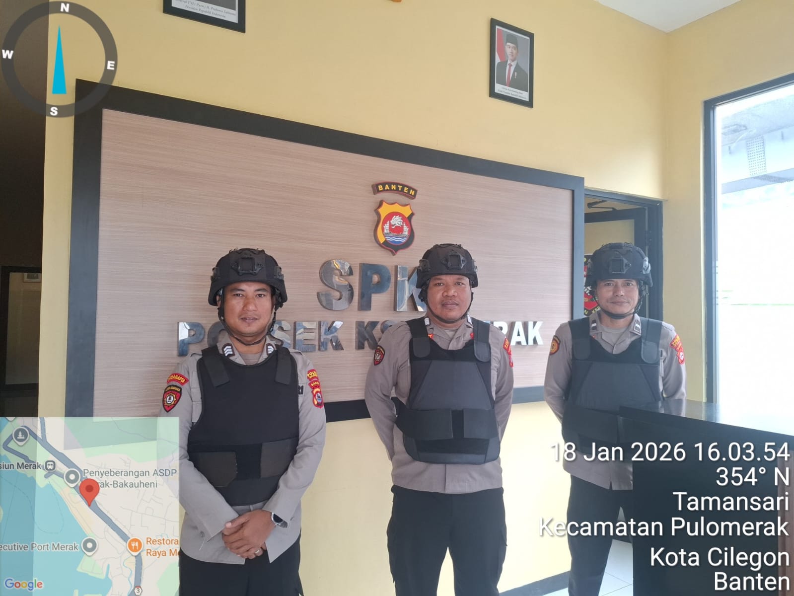 Cilegon - Personel piket jaga Polsek Kskp Merak Polres Cilgon Polda Banten melaksanakan siaga 1 Polsek pelaksanaan Sispam Mako oleh piket siaga dipimpin oleh Kspk Polsek Kskpy Merak Polres Cilegon Polda Banten, Minggu (18/01/2026).