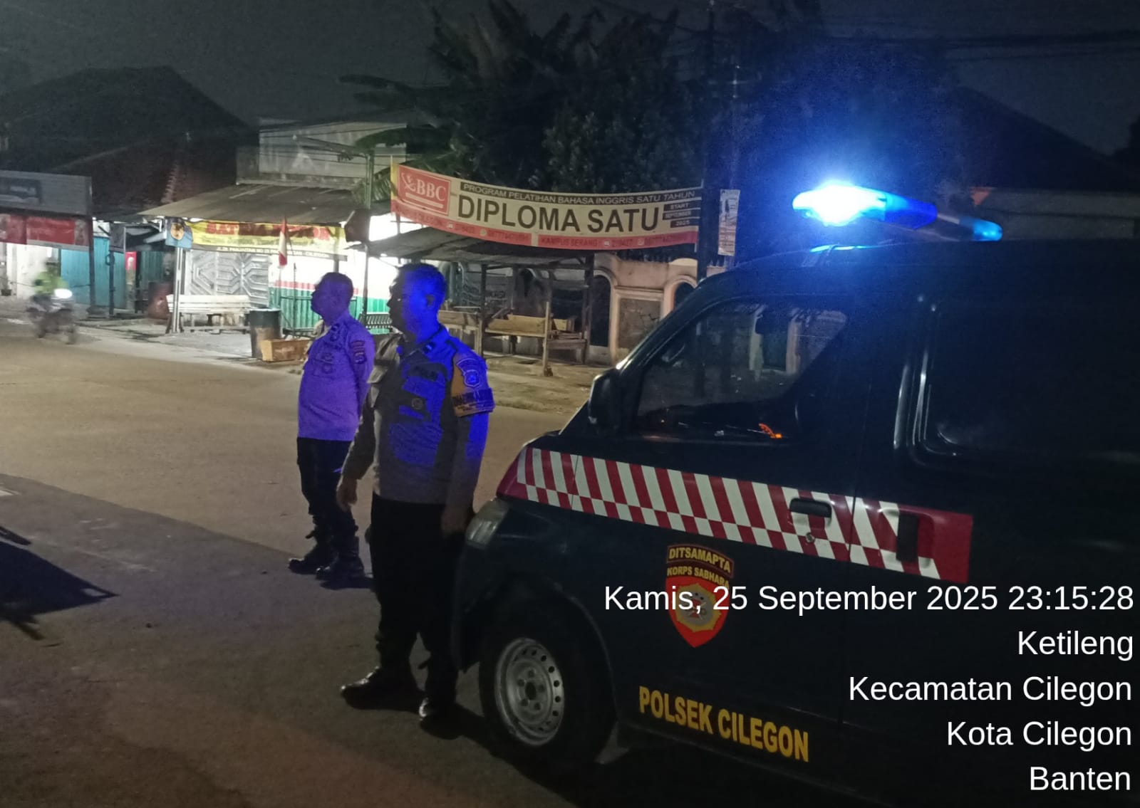Anggota samapta Polsek Cilegon laksanakan giat Blue light patrol antisipasi kejahatan malam hari jaga kondusifitas di wilayah