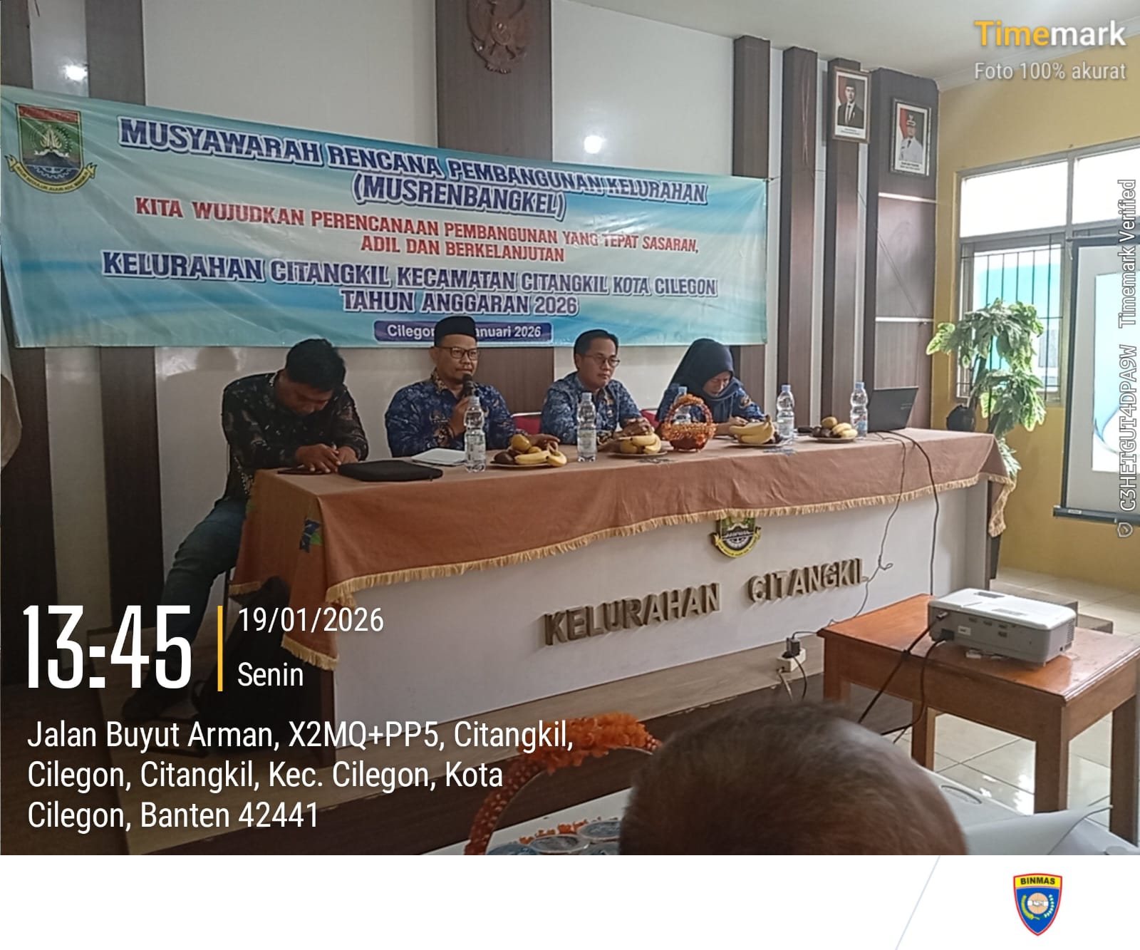 Cilegon - Bhabinkamtibmas Kelurahan Citangkil Polsek Ciwandan Polres Cilegon Polda Banten AIPDA Warudin Menghadiri kegiatan rapat Pra Musrenbangkel Tingkat Kelurahan yang bertempat di lingkungan Kelurahan Citangkil kecamatan Citangkil kota Cilegon, Senin (19/01/2026).