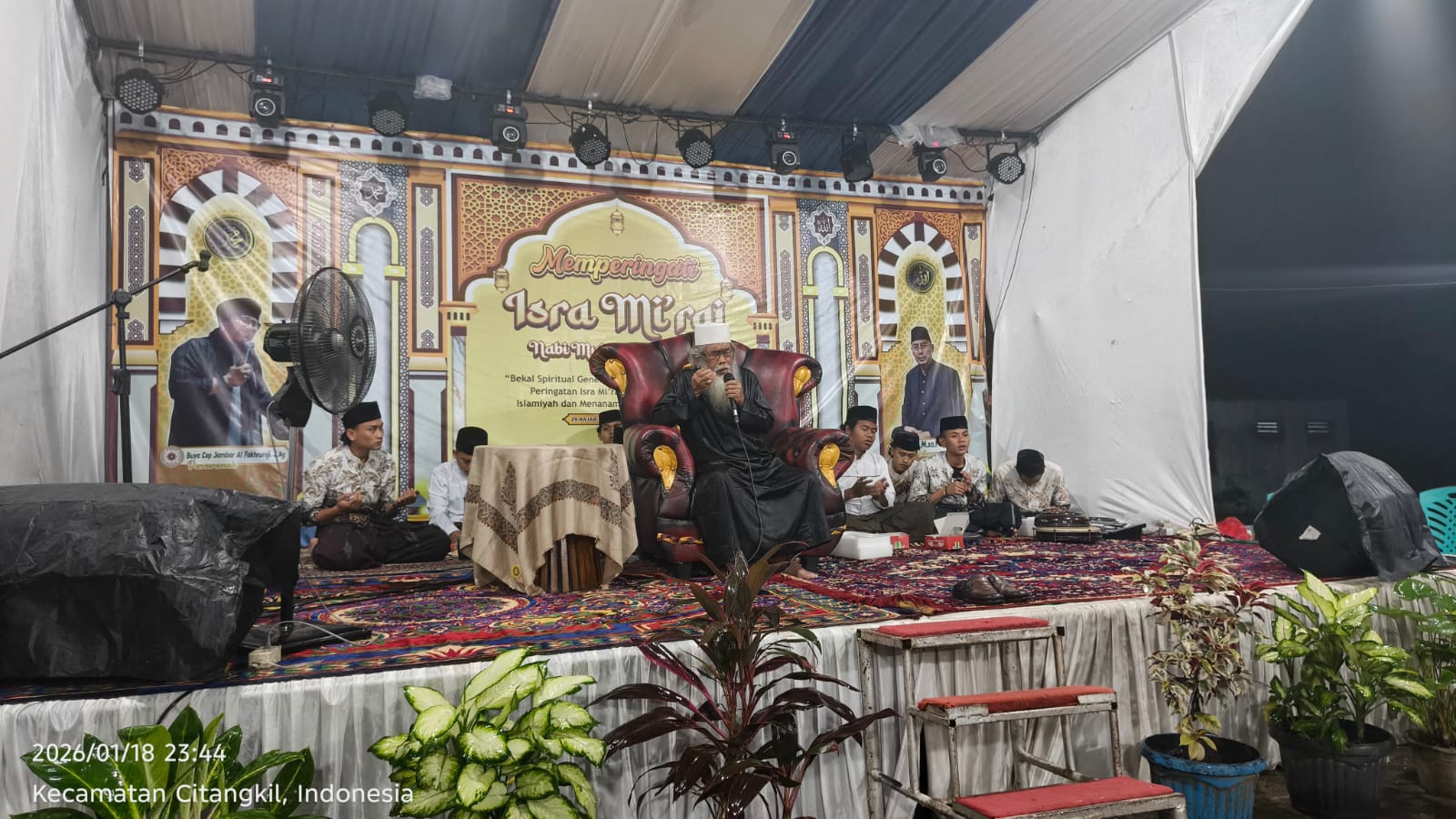 Kegiatan ini berlangsung dalam acara Peringatan Isro Miraj, dihadiri Camat Citangkil, Plt Lurah Samangraya, dan tokoh masyarakat. IPTU Ali Asron memberikan himbauan terkait harkamtibmas, ITE, pencegahan narkoba, dan layanan 110. Situasi aman dan tertib.