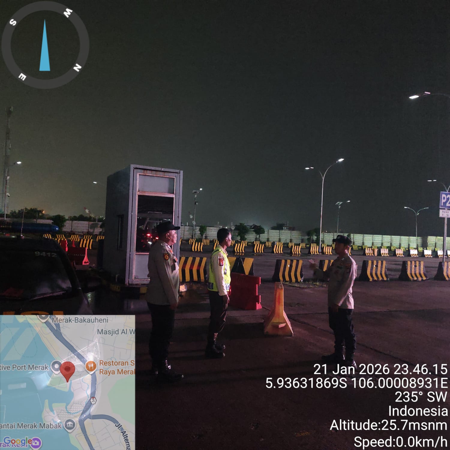 Cilegon - Personil Polsek Kskp Merak Polres Cilegon melaksanakan patroli di kawasan pelabuhan merak memberikan rasa aman dan damai, Kamis (22/01/2026)