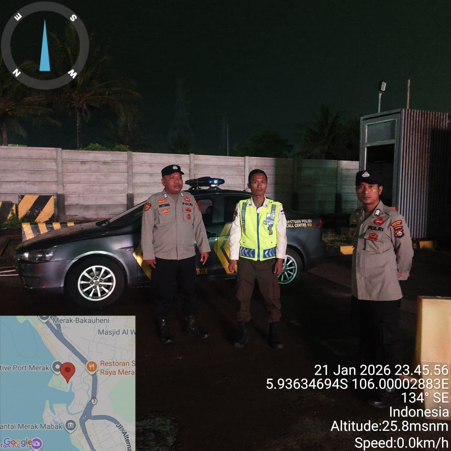 Cilegon - Personil Polsek Kskp Merak Polres Cilegon melaksanakan patroli di kawasan pelabuhan merak memberikan rasa aman dan damai, Kamis (22/01/2026)