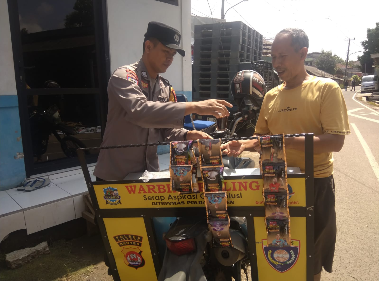 Dalam kegiatan WARBIN, Bhaninkamtibmas Polsek Ciwandan membuka “warung” khusus yang difungsikan sebagai tempat bagi warga untuk menyampaikan berbagai keluhan, masukan, atau permasalahan yang mereka hadapi.