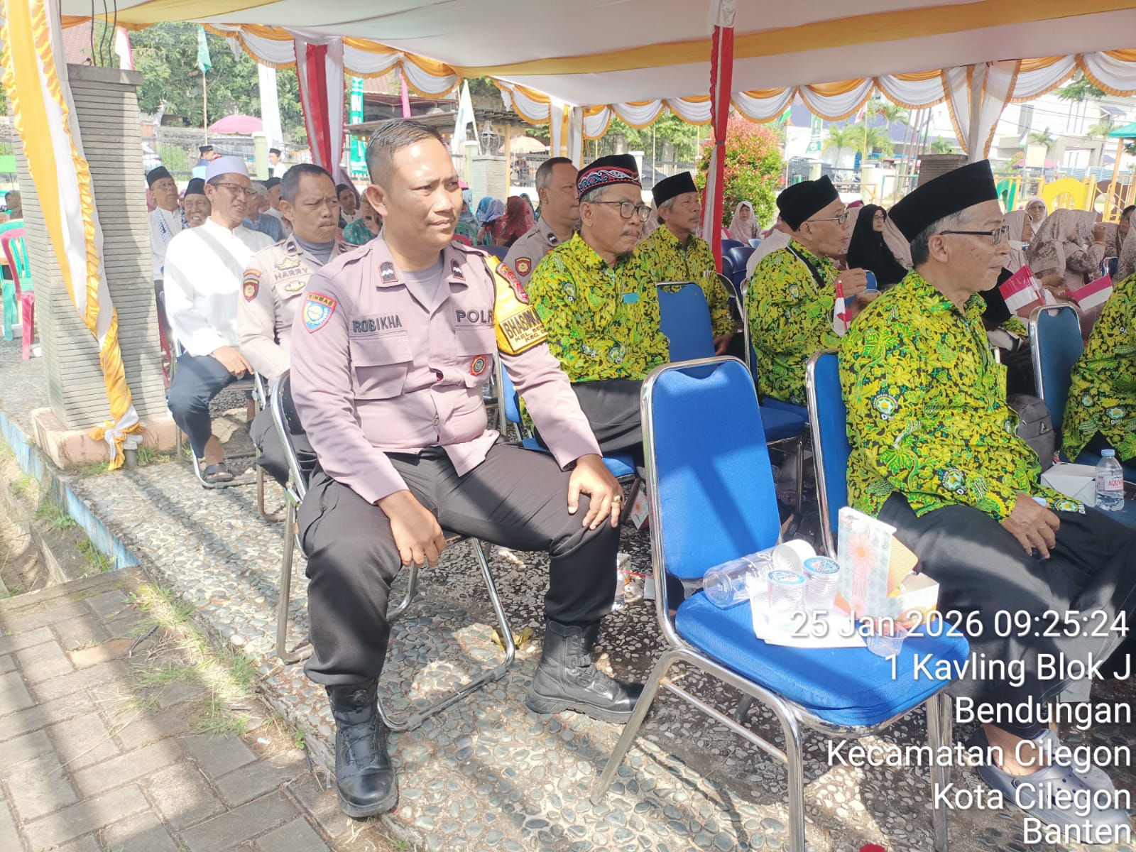 Cilegon – Polres Cilegon Polda Banten, Kanit Binmas Polsek Cilegon AKP Asep mewakili Kapolsek Cilegon bersama Personel Polsek Cilegon menghadiri Istigosah dan Penggalangan Dana Bencana dengan Tema "Merajut Persaudaraan Menuju Keberkahan Illahi". Minggu (25/01/2026).