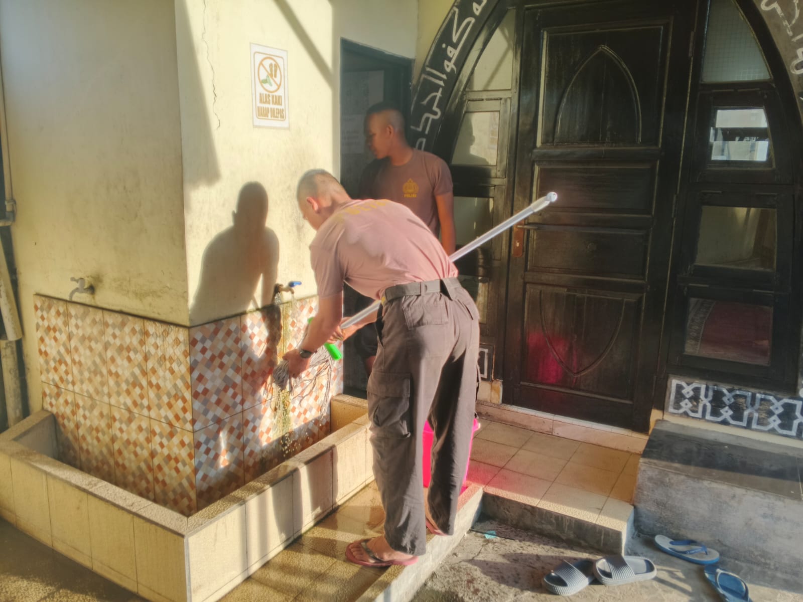 Cilegon - Dalam kesempatan ini personil Polsek Pulomerak melaksanakan kegiatan gotong royong membersihkan mesjid di lingkungan Polsek Pulomerak, Minggu (25/1/25)