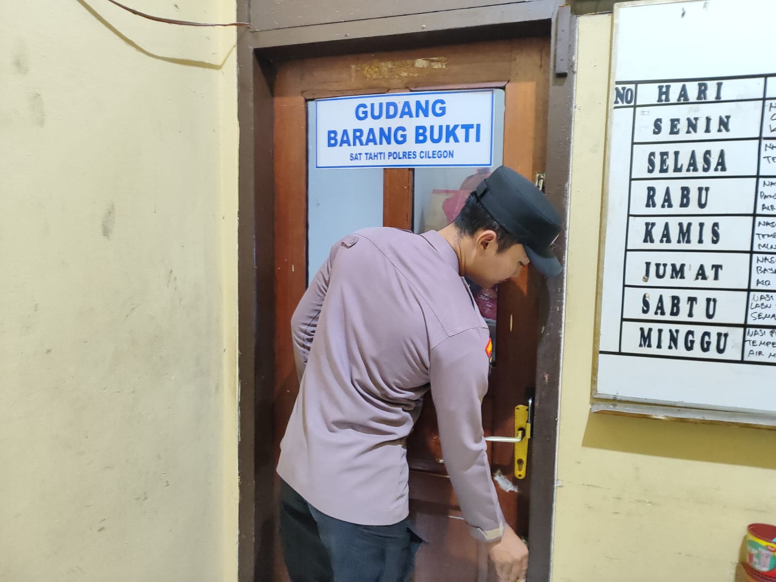 Cilegon, Polres Cilegon Polda Banten. Di gudang barang bukti Polres Cilegon. Anggota SatTahti polres cilegon mengecek barang bukti. (28/01/2026)