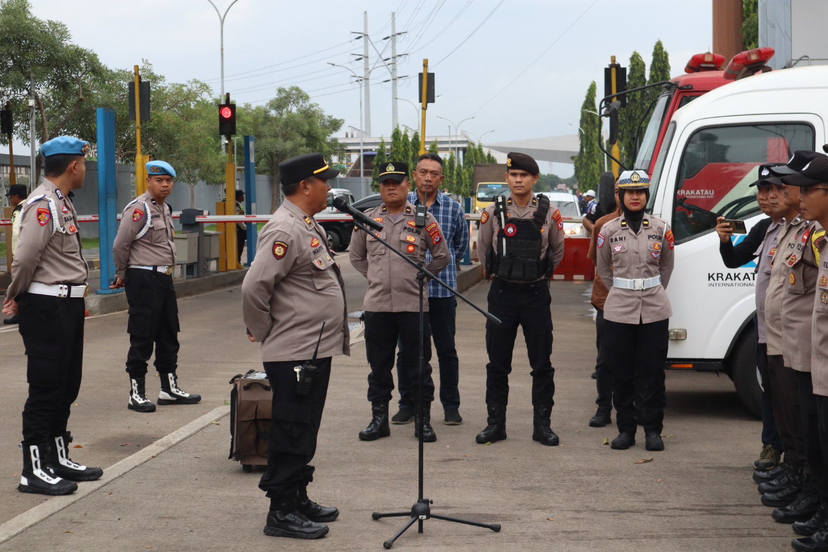 Apel pengamanan dipimpin oleh Panit Samapta Polsek Ciwandan IPTU Wahyudin, sebagai bentuk kesiapan personel dalam mengamankan jalannya penyampaian pendapat di muka umum agar berlangsung aman, tertib, dan kondusif.