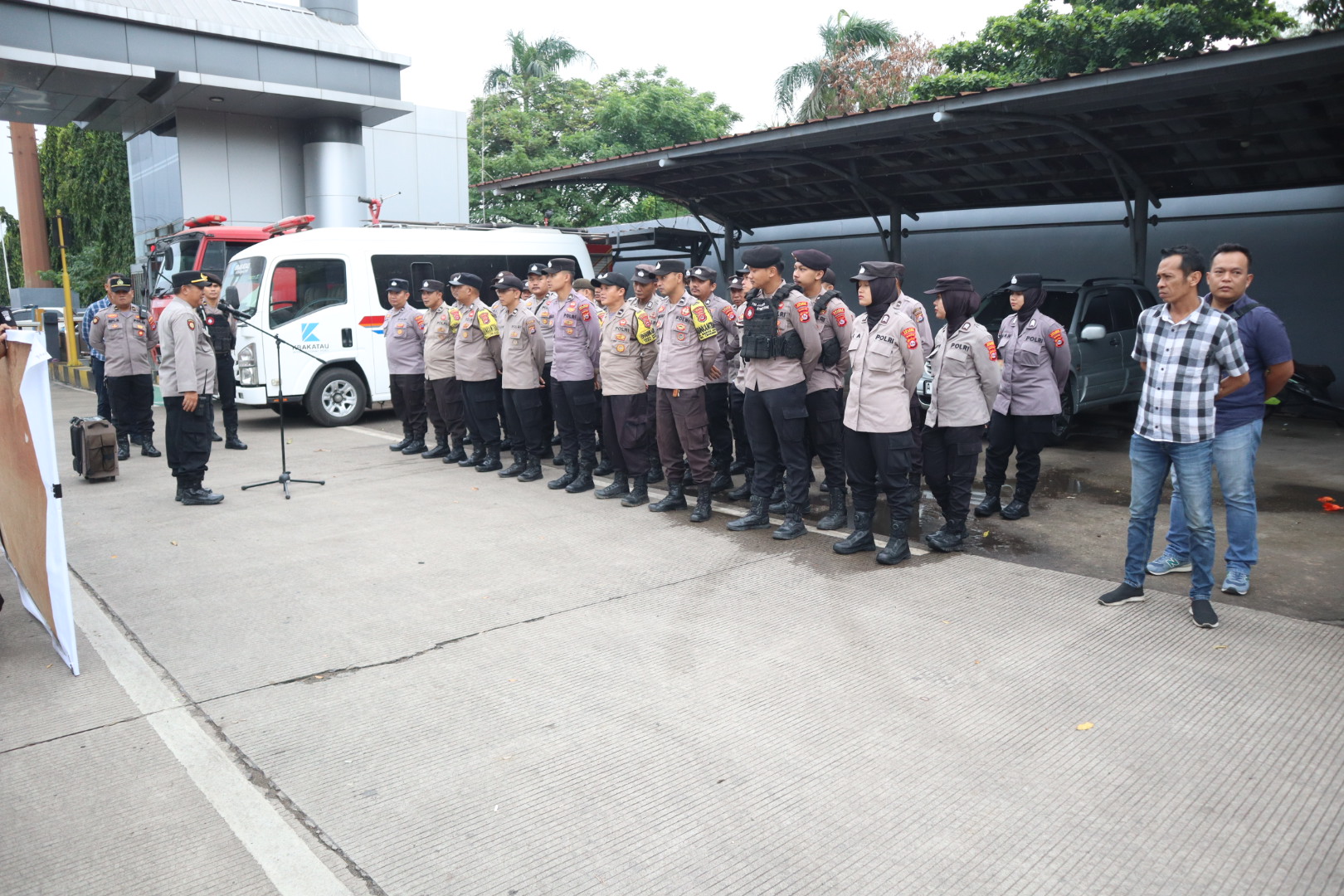 Cilegon – Polres Cilegon melaksanakan apel pengamanan aksi unjuk rasa yang dilakukan oleh Konsulat Cabang Federasi Serikat Pekerja Metal Indonesia (FSPMI) Kota Cilegon menuju PT Krakatau Bandar Samudera, Kegiatan pengamanan berlangsung sejak pukul 06.00 WIB hingga 18.00 WIB dan dipusatkan di kawasan PT Krakatau Bandar Samudera, Kota Cilegon. Kamis, 29/1/2026.