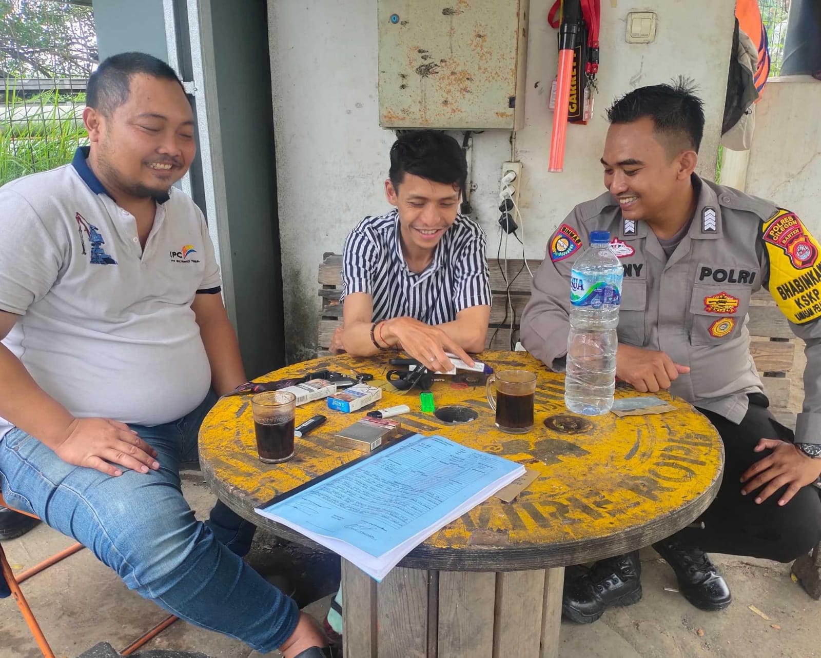 Dekat dengan Masyarakat, Personil Bhabinkamtibmas Polsek KP Banten Berbincang dengan Buruh Pelabuhan
