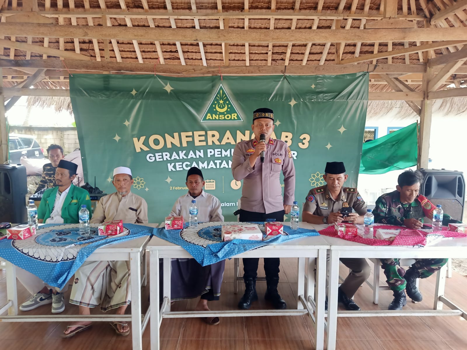 Polsek Anyar Polres Cilegon Polda Banten menghadiri kegiatan Konferensi Anak Cabang (Konferancab) III Pimpinan Anak Cabang Gerakan Pemuda (GP) Ansor Kecamatan Anyar yang diselenggarakan pada tahun 2026 di wilayah Kecamatan Anyar Kabupaten Serang. Senin (02/02)