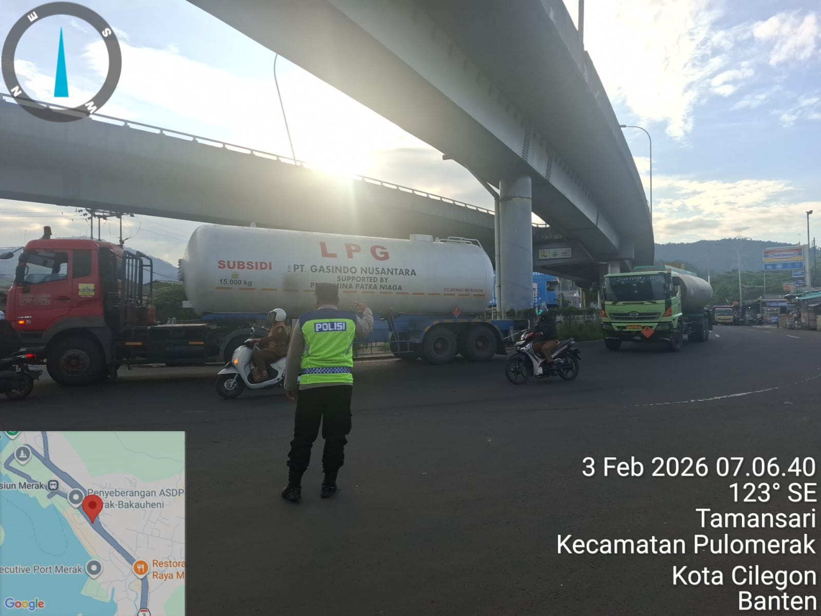 Cilegon - Dalam rangka peningkatan pelayanan prima kepada masyarakat, Kskp Merak Polres Cilegon Polda Banten melaksanakan pengaturan antrian R4 yang akan masuk ke Kapal Ferry di Pelabuhan Merak, Kamis (05/02/2026).