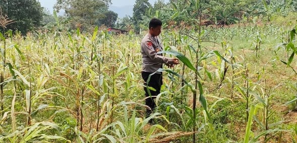 Personil Bhabinkamtibmas Polsek Purwakarta Gelar Pendampingan dan Cek Tanaman jagung Warga lokal