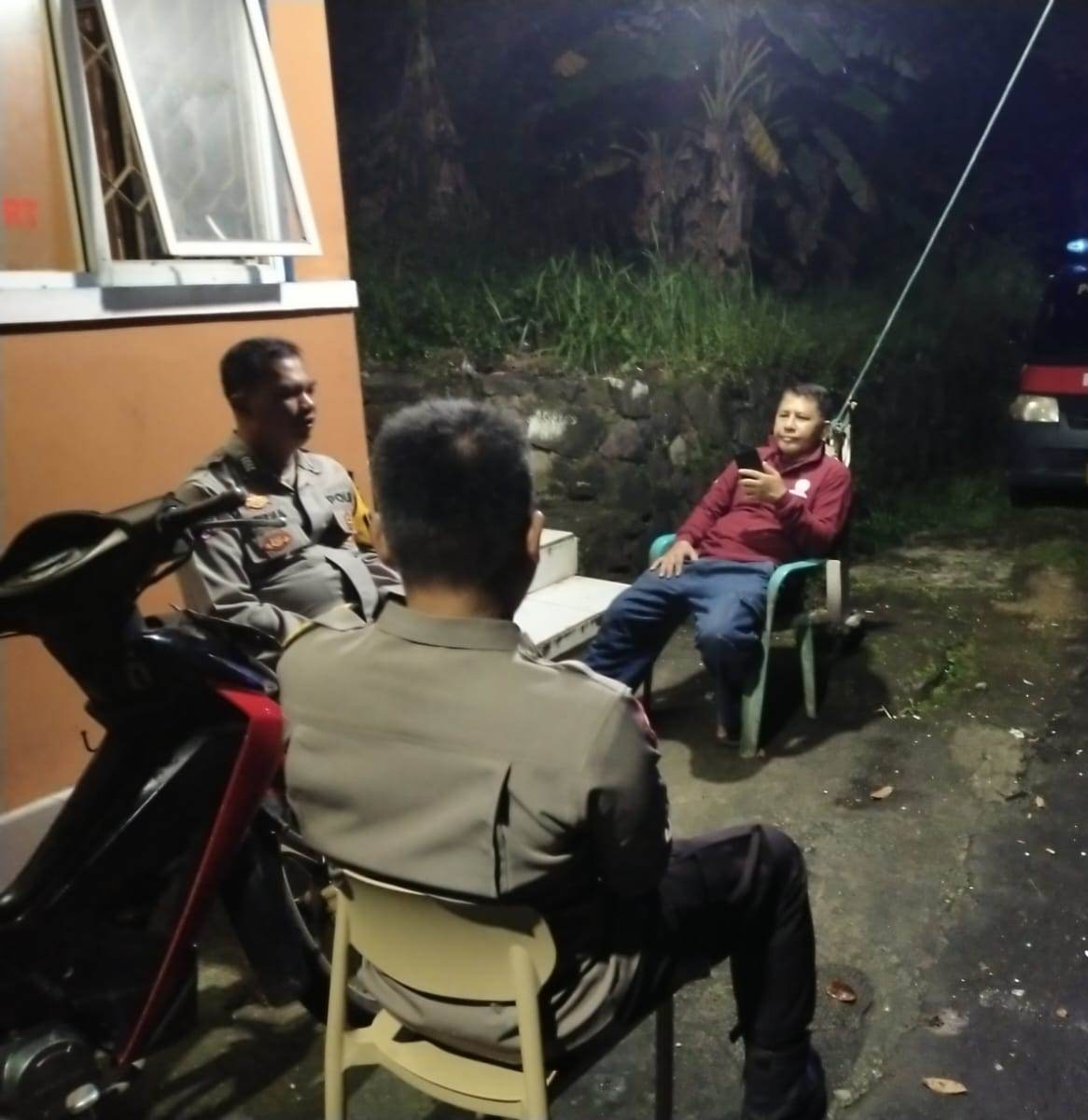 Kami selalu melakukan koordinasi dan komunikasi langsung dengan warga yang sedang Melaksanakan ronda malam, sampaikan himbauan kamtibmas.