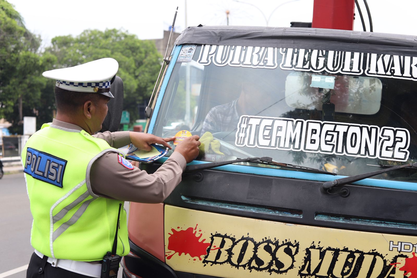 Dalam operasi tersebut, personel Sat Lantas melakukan pemeriksaan kelengkapan kendaraan serta penegakan hukum terhadap pengemudi yang melanggar aturan lalu lintas, khususnya truk bermuatan besar yang melintas di kawasan kota pada jam operasional yang dibatasi.