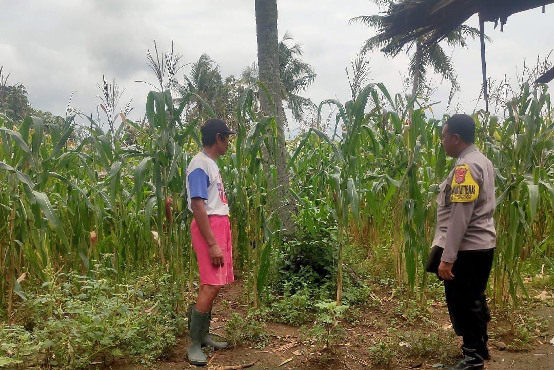 Dalam kegiatan monitoring ini, Bhabinkamtibmas meninjau langsung kondisi lahan jagung.