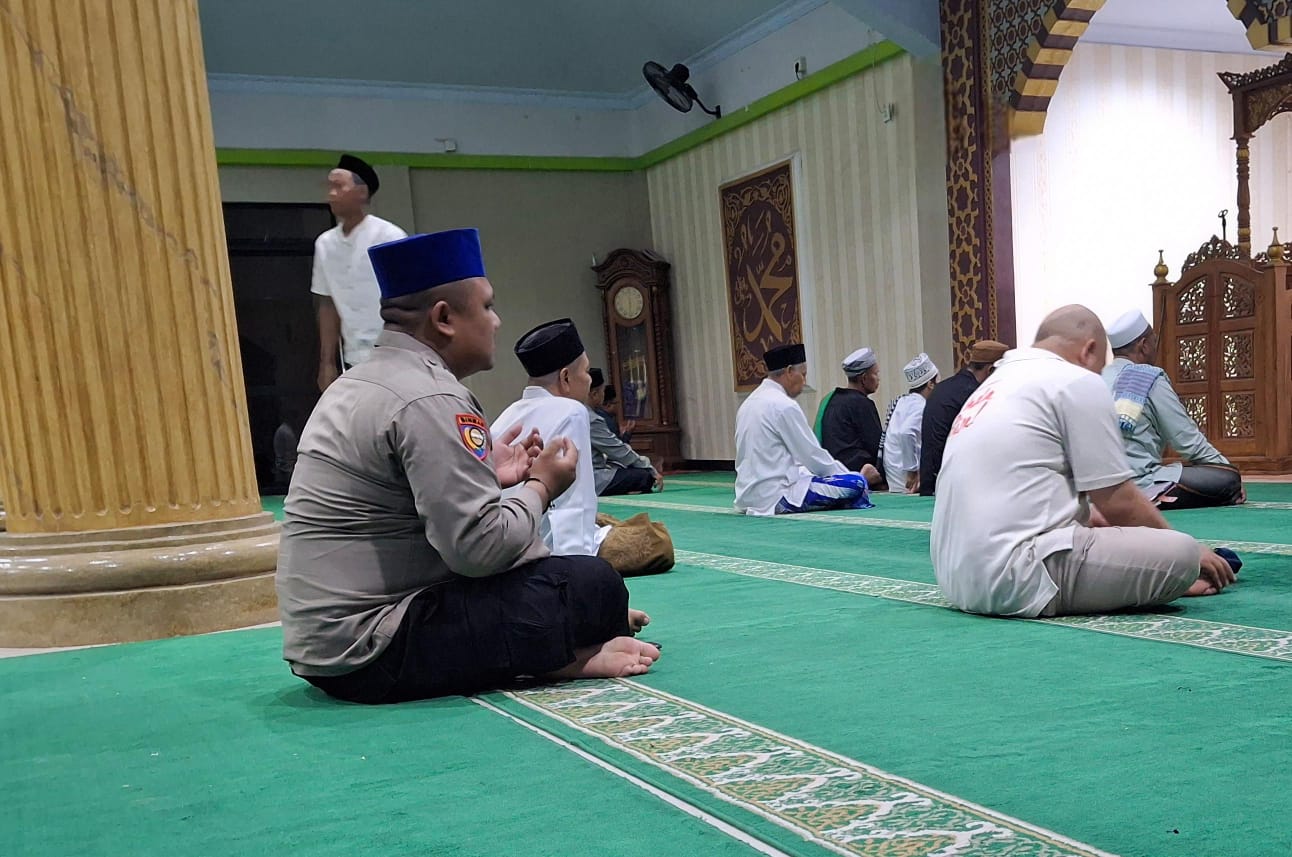 kegiatan tersebut, Personil Polsek Cibeber berbaur dengan jemaah masjid dalam