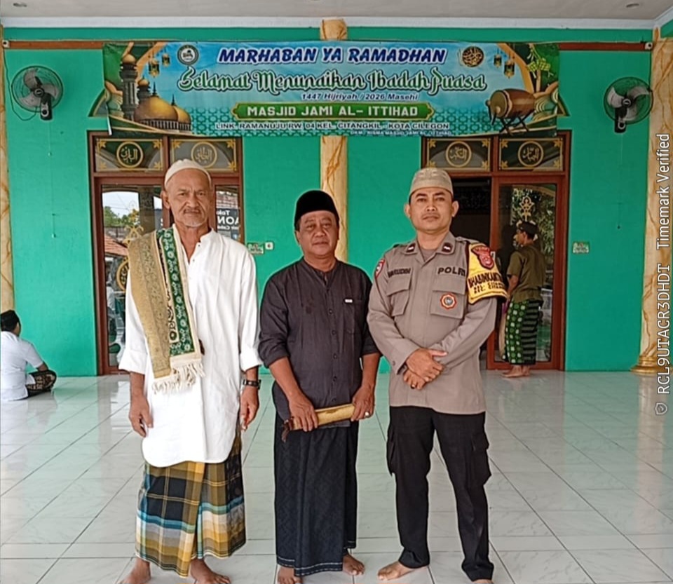 Cilegon - PJU Polres Cilegon, IPTU H.MUNIF beserta Personil Polsek Ciwandan melaksanakan kegiatan Jumling (Jum'at keliling) di Masjid Al Barokah, Link.Gunung Asem RT 08 RW 04 Kelurahan Lebak Denok Kecamatan Citangkil Kota Cilegon. Kegiatan ini bertujuan untuk menjalin silaturahmi dan komunikasi yang baik dengan masyarakat sekaligus menyampaikan pesan-pesan kamtibmas.