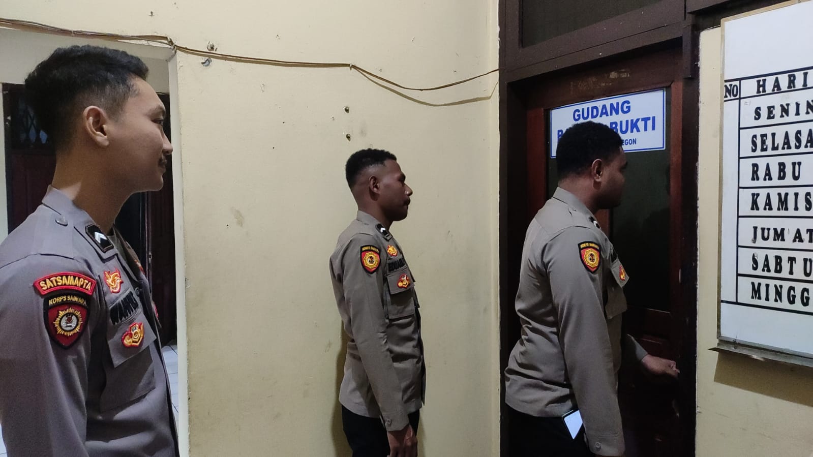 Cilegon, Polres Cilegon Polda Banten. Di gudang barang bukti Polres Cilegon. Anggota SatTahti polres cilegon mengecek barang bukti. (21/02/2026)