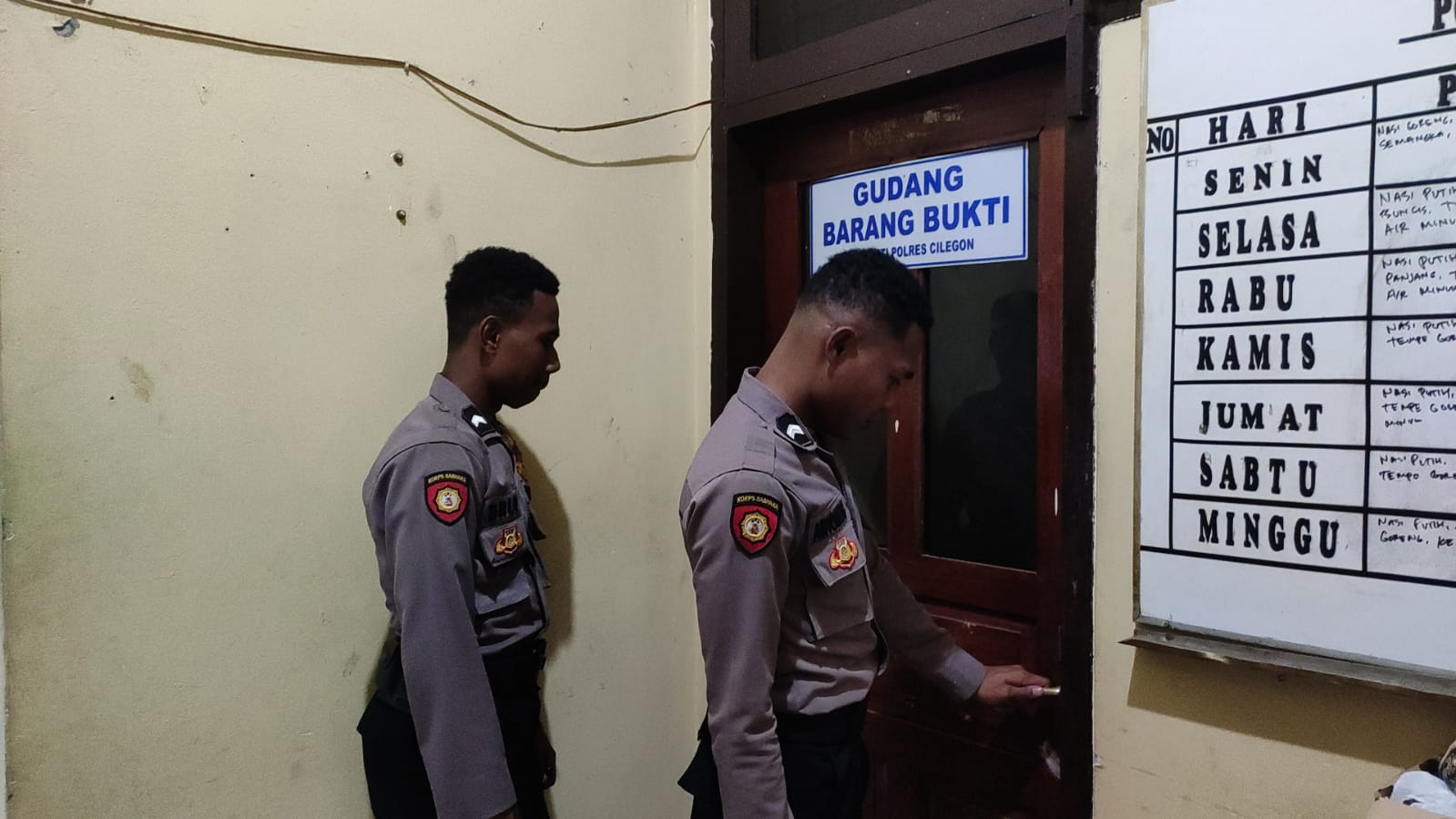 Anggota Piket Tahti Polres Cilegon, Harus Melakukan Kegiatan Rutin Pengecekan Kelengkapan dan Barang Bukti Di Gudang Barang Bukti.