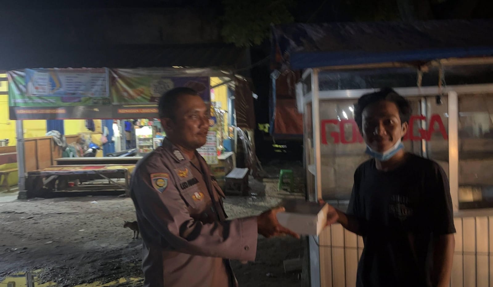 Sahur Ramadhan, Bripka Leo A & Brigpol Chaeruman Bhabinkamtibmas Hantarkan Puluhan Nasi Kotak Ke Warga Kurang Mampu & Sosialisasi Call Center 110