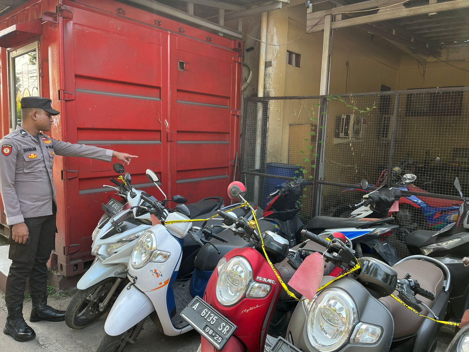Cilegon, Polres Cilegon Polda Banten. Di gudang barang bukti Polres Cilegon. Anggota SatTahti polres cilegon mengecek barang bukti. (26/02/2026)