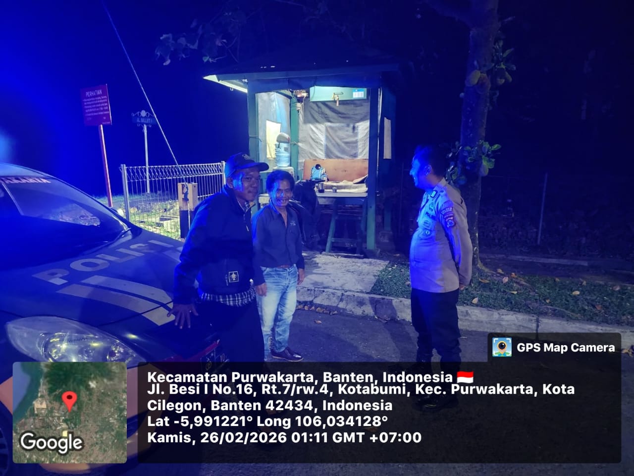 Cilegon – Polres Cilegon Polda Banten, Dalam Rangka Pencegahan Street Crime dan Memelihara situasi keamanan dan ketertiban serta memberikan rasa aman dan nyaman di masyarakat, Polsek Purwakarta Polres Cilegon tingkatkan blue light patrol. Kamis (26/02/2026).