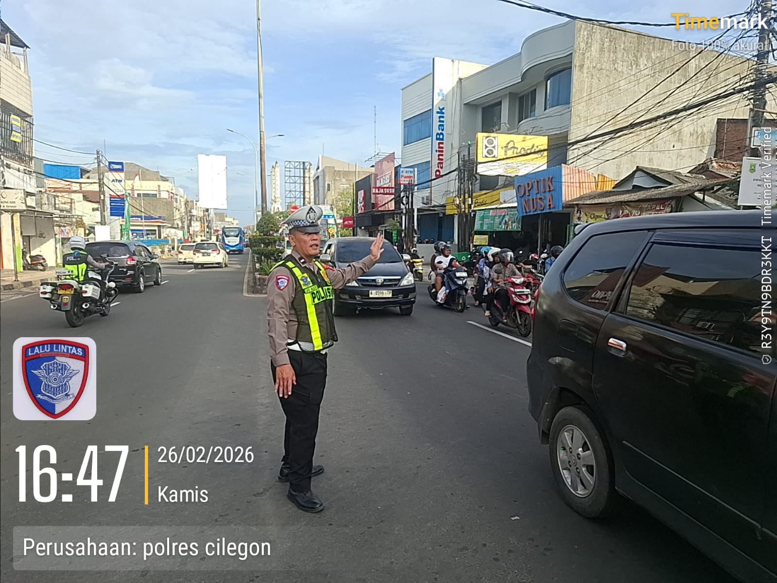 Cilegon – Polres Cilegon Polda Banten, Dalam Mewujudkan Aksi Nyata Pelayanan Kepada Masyarakat, Personil Satlantas Polres Cilegon Polda Banten Laksanakan PECAK (Pergelaran Cepat Anggota Kepolisian) Pengaturan Lalu lintas di wilayah perkotaaan terutama di titik rawan kemacetan dan kecelakaan lalu lintas, Kamis (26/02/2026).