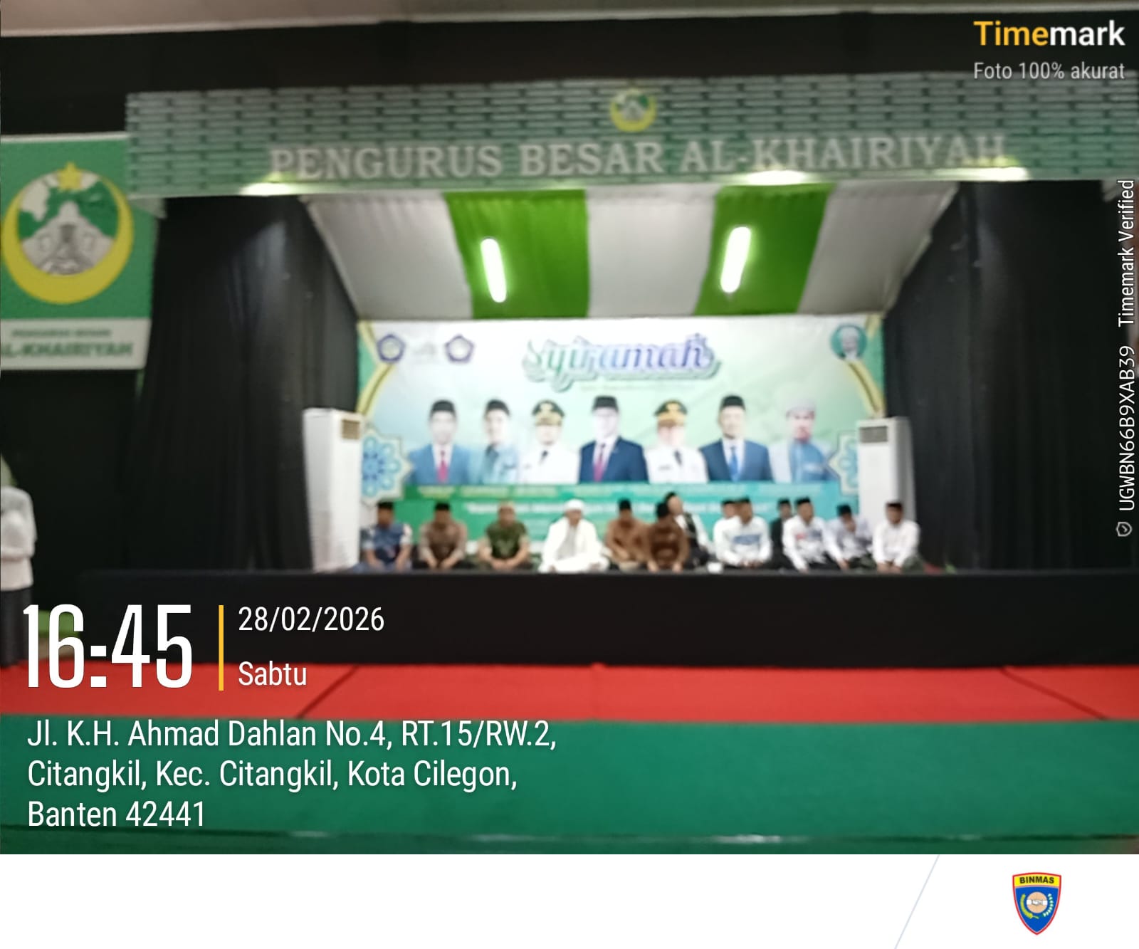 Cilegon - Dalam rangka meningkatkan kehadiran POLRI di tengah masyarakat, Bhabinkamtibmas dan Babinsa Kelurahan Citangkil, AIPDA WARUDIN dan SERKA JANDRI, menghadiri acara Syi'ar Ramadhan di Gedung GSG Alkhairiyah, Link. Citangkil RT 01 RW 02, Kelurahan Citangkil, Cilegon, Sabtu (28/02/2026).