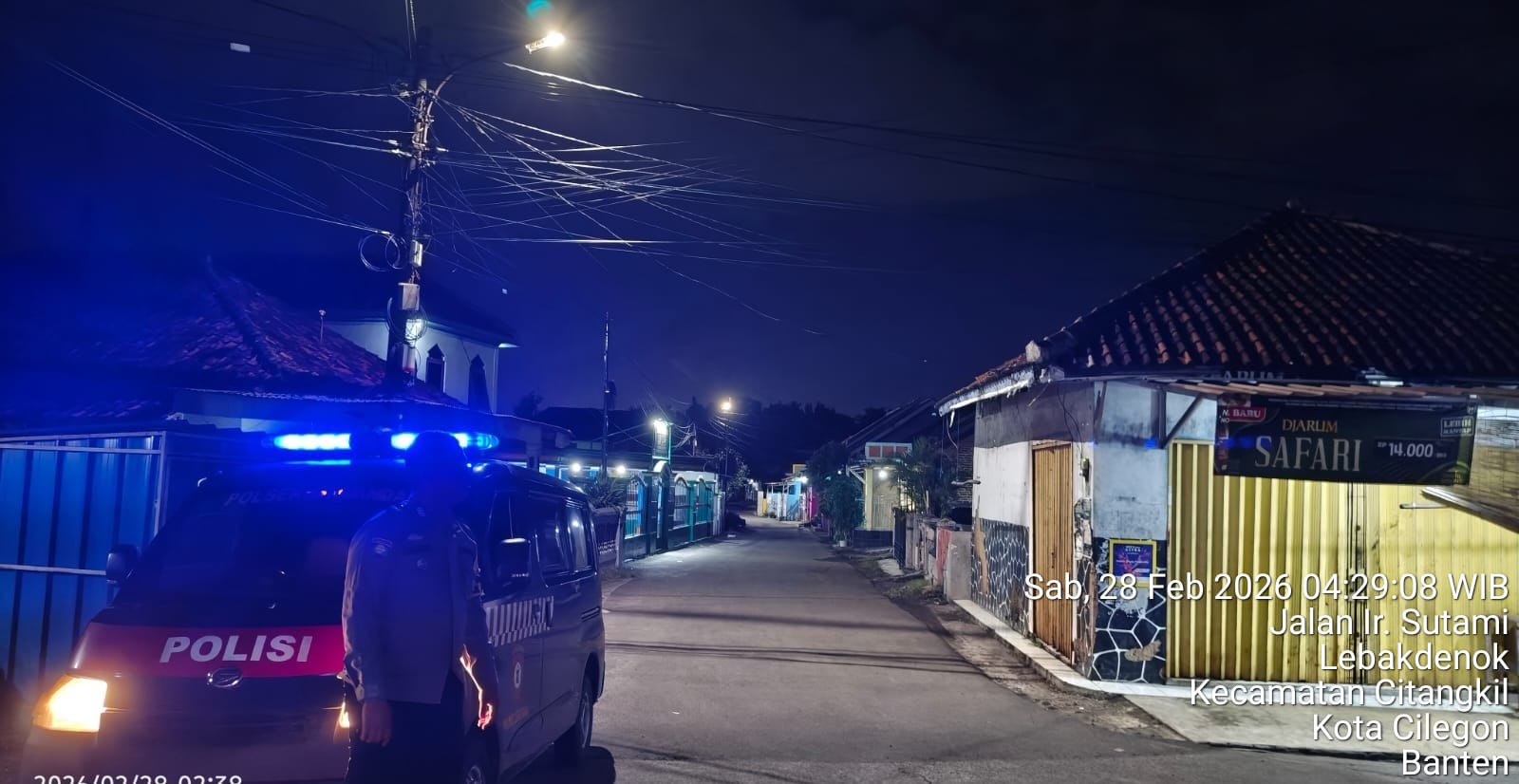 Cilegon - Polres Cilegon melalui Polsek Ciwandan melaksanakan kegiatan Blue Light Patrol. Kegiatan ini bertujuan untuk mengantisipasi gangguan kamtibmas, premanisme, C3 (curat, curas, dan curanmor), balap liar, gang motor, dan perkelahian remaja didaerah hukum Polsek Ciwandan, Sabtu (28/02/2026).