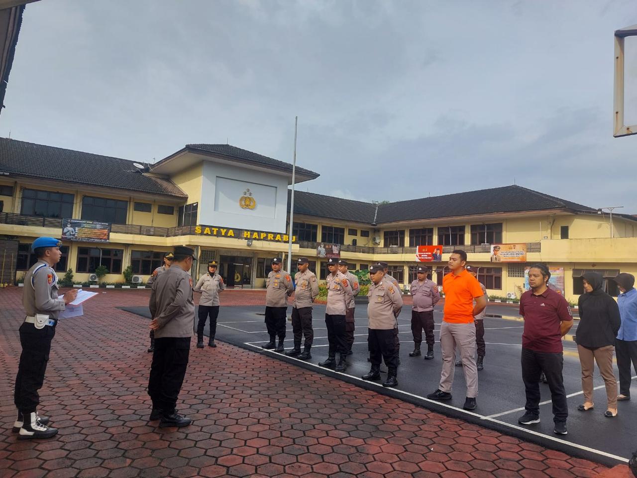 Anggota sium Polres Cilegon , tapil dalam Pellaksanaan rangka, kegiatan Apel ton Kerangka. Cilegon - Polres Cilegon Polda Banten - sium Polres Cilegon melaksanakan Apel Kerangka di Lapangan Apel Satya Haprabu Polres Cilegon Guna menunjukan kesiap siagaan pelayanan kepada masyarakat, sabtu (08/03/2026) Pukul 08.00 Wib. Kabag SDM Polres Cilegon selalu mengingatkan “Apel kerangka Penting untuk di laksanakan sebagai bentuk ke siap siagaan kita untuk hadir di tengah tengah masyarakat untuk melayani masyarakat sebagai mana tugas pokok Anggota Polri agar tericiptanya Harkamtibnas khususnya di Wilayah Kota Cilegon."Ujarnya Kegiatan ini sudah termasuk rutinatas personel Polres Cilegon menyadari kerawanan kejadian di akhir pekan kami selalu memberikan himbauan ke pada masyarakat untuk selalu hati hati dan waspada dalam menjalankan aktivitas di akhir pekan. Selain dari pada itu anggota yang terlibat apel tersebut melakukan pengaman di tempat ibadah guna kelancara dan ke amanan acara ibadah tersebut."Tutupnya (BL)