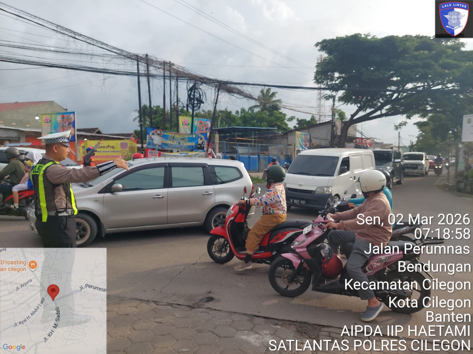 Cilegon – Polres Cilegon Polda Banten, Dalam Mewujudkan Aksi Nyata Pelayanan Kepada Masyarakat, Personil Satlantas Polres Cilegon Polda Banten Laksanakan PECAK (Pergelaran Cepat Anggota Kepolisian) Pengaturan Lalu lintas di wilayah perkotaaan terutama di titik rawan kemacetan dan kecelakaan lalu lintas, Senin (02/03/2026).