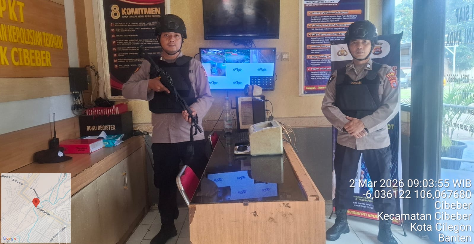Cilegon – Polres Cilegon Polda Banten Guna mengantisipasi adanya potensi ancaman dan gangguan terhadap keamanan kantor maupun keselamatan personel piket jaga, Personel Polsek Cibeber Polres Cilegon selalu tingkatkan kesiapsiagaan dan kewaspadaan dengan rutin menggelar kegiatan Sistem Pengamanan Mako (Sispam Mako), Senin (02/03/2026).