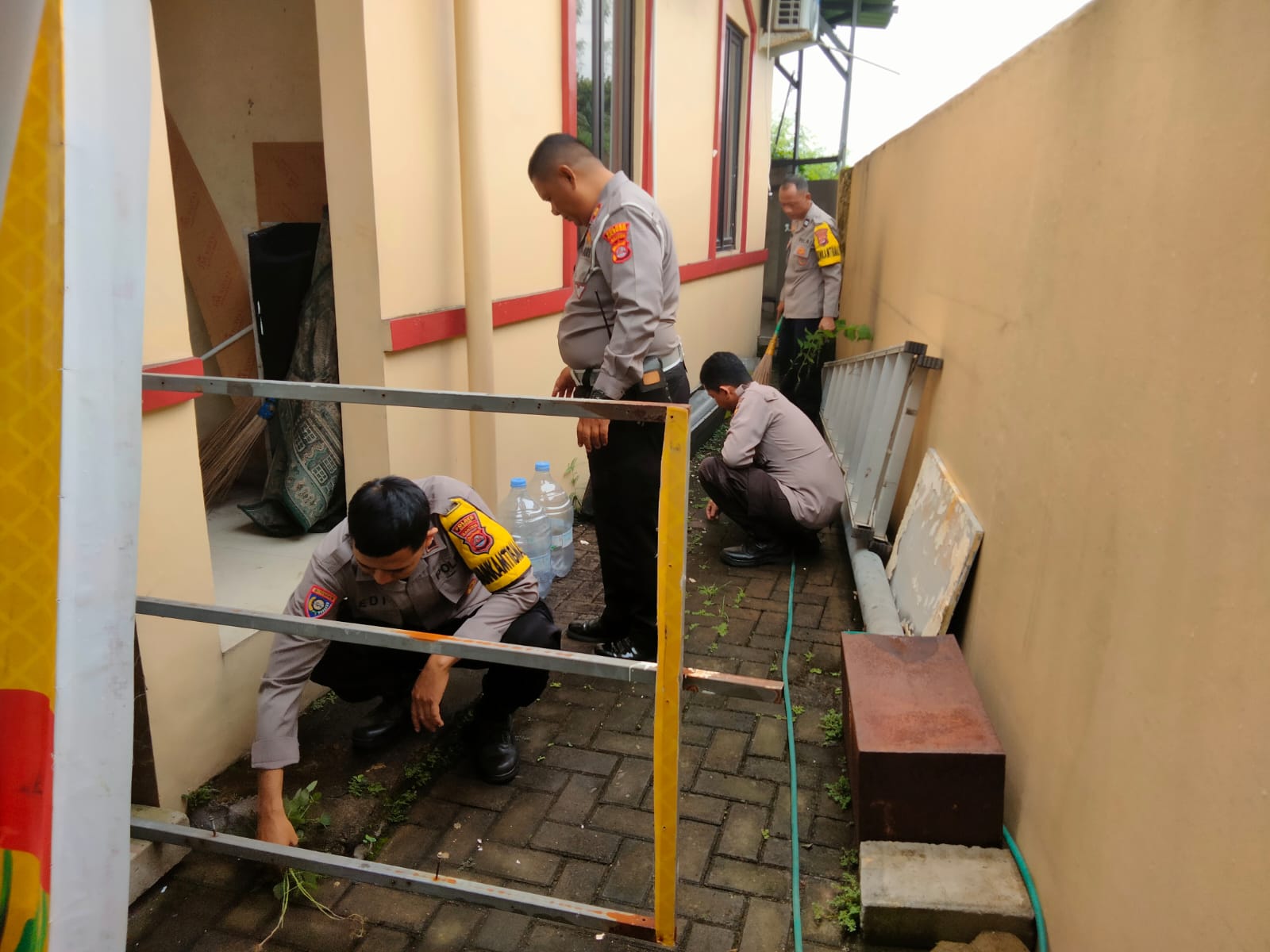 Personil Polsek Ciwandan dengan sigap membersihkan mushola, mulai dari membersihkan lantai, membersihkan kaca, hingga membersihkan tempat wudhu. Kegiatan ini juga diikuti oleh masyarakat sekitar yang ingin turut serta dalam menjaga kebersihan mushola.