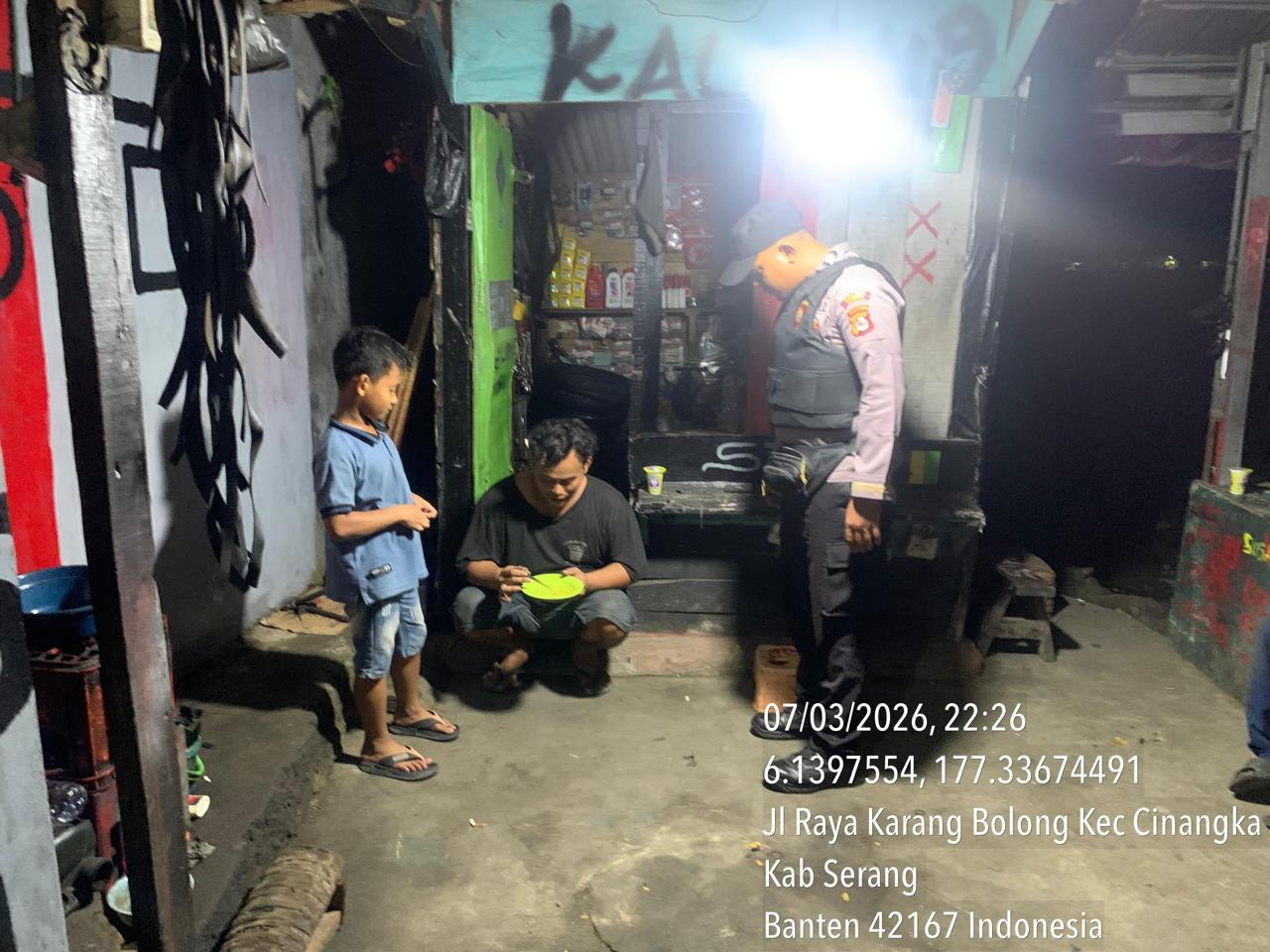 *Cilegon* – Dalam Rangka Pencegahan Kejahatan Jalanan dan Memelihara situasi keamanan dan menjaga serta memberikan rasa aman dan nyaman di masyarakat,Salah satu upaya untuk mewujudkan hal tersebut sebagaimana yang dilakukan oleh Personil Polsek Cinangka Polres Cilegon Polda Banten melaksanakan giat patroli blue light malam hari hingga menjelang pagi, Minggu (08/03/2026).