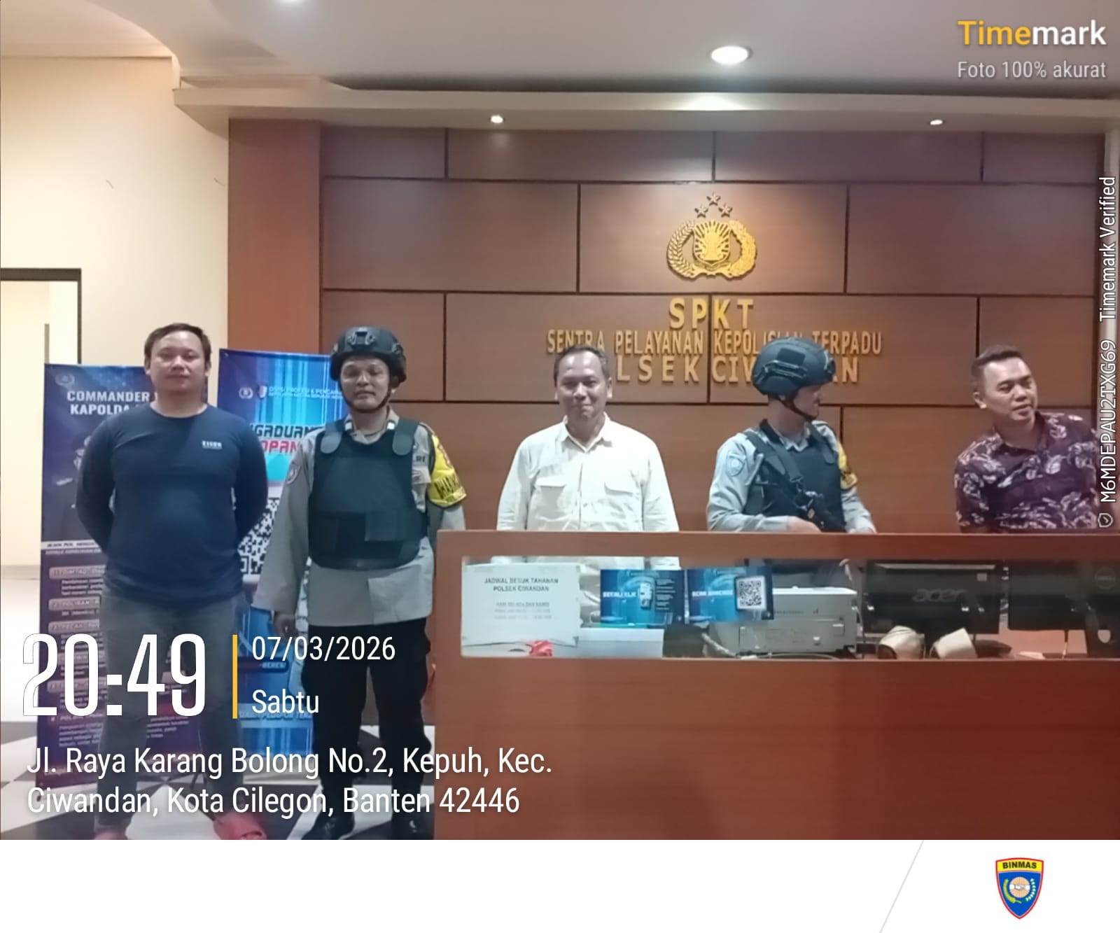 Kapolres Cilegon Polda Banten AKBP Dr. Martua Raja Taripar Laut Silitonga Melalui Kapolsek Ciwandan Polres Cilegon Polda Banten KOMPOL Achri Dwi Yunito Mengatakan, kegiatan Sispam Mako ini Wujud Kesiapan Siagaan Personel Polsek Ciwandan dalam Melaksanakan Penjagaan Mako Polsek,dan juga untuk mengantisipasi terjadinya tamu tidak diundang atau orang yang tidak dikenal yang dapat mengancam mako maupun personel Polsek Ciwandan.