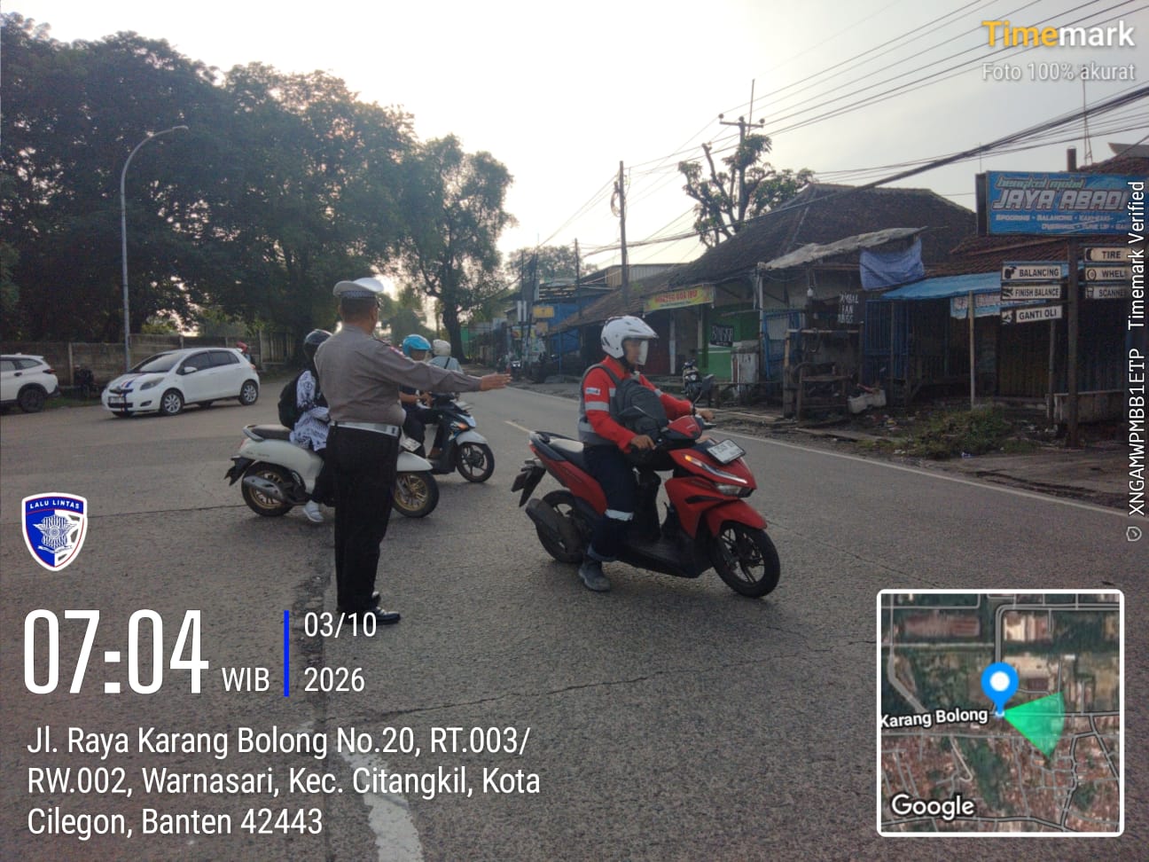 Cilegon - Guna Kelancaran Lalu-lintas Personil Unit Lantas Polsek Ciwandan Polres Cilegon Polda Banten melaksanakan pengaturan lalu-lintas di Simpang Beringin Ciwandan Pertigaan Kawasan Industri KSP/ KIEC I  kelurahan Warnasari Kecamatan Citangkil Kota Cilegon, Senin (09/03/2026).