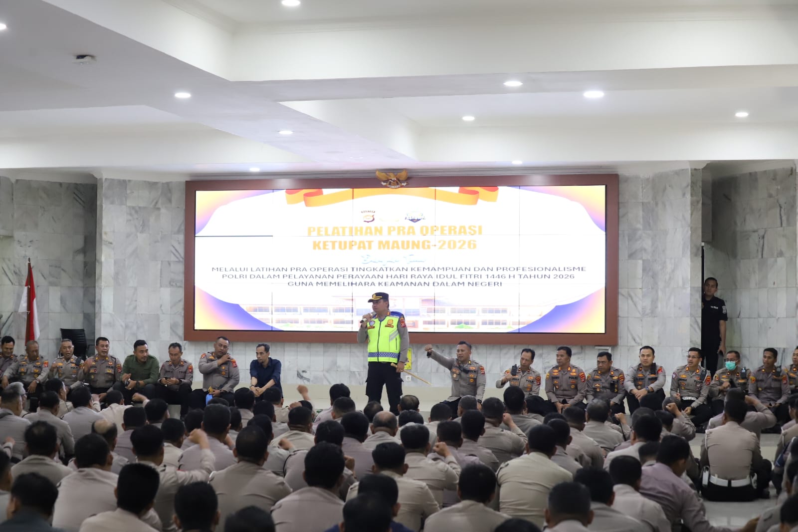 Dalam rangka memberikan pelayanan, perlindungan, dan rasa aman kepada masyarakat yang akan melaksanakan mudik pada perayaan Idul Fitri 1447 H, Polres Cilegon melaksanakan kegiatan Latihan Pra Operasi (Latpraops) Ketupat Maung 2026. Kegiatan ini bertujuan untuk meningkatkan kesiapsiagaan personel serta menyamakan persepsi dalam pelaksanaan tugas pengamanan arus mudik dan arus balik Lebaran di wilayah hukum Polres Cilegon.