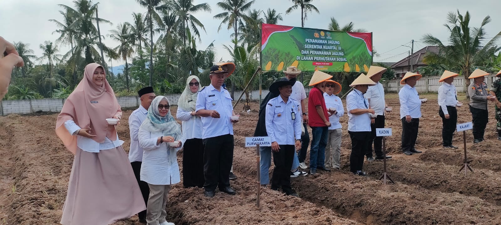 -POLRES CILEGON – Polda Banten.Polsek Purwakarta, Polres Cilegon, bersama Forkopincam Purwakarta menggelar kegiatan penanaman jagung serentak di Lingkungan Cilentrang, Kelurahan Purwakarta, Kecamatan Purwakarta, Kota Cilegon, pada.Sabtu.[14-03-2026]. Kegiatan ini juga merupakan bagian dari program penanaman jagung di lahan pertanian sosial.
