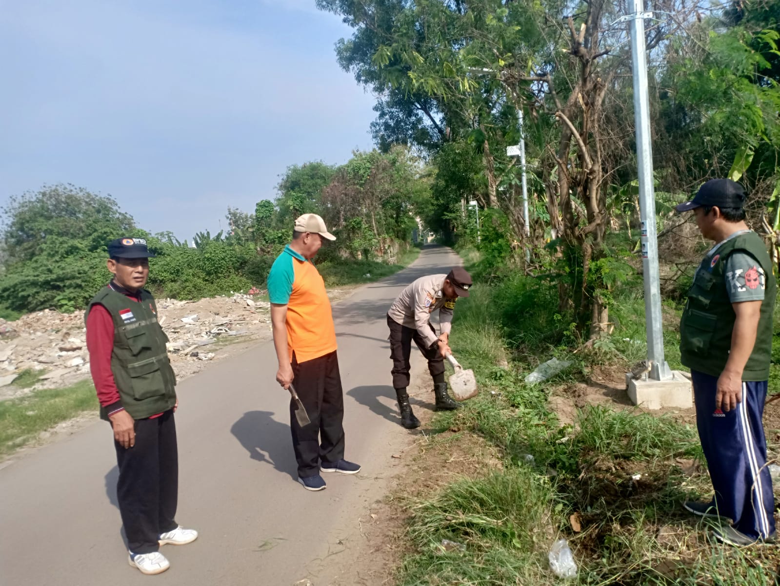 Cilegon - Bhabinkamtibmas Kelurahan Warnasari Polsek Ciwandan Polres Cilegon Polda Banten AIPDA Asep Karyudin bersama warga melaksanakan Gotong Royong Kerja Bhakti bersih-bersih Lingkungan Kelurahan Kubangsari, Minggu (15/03/2026).